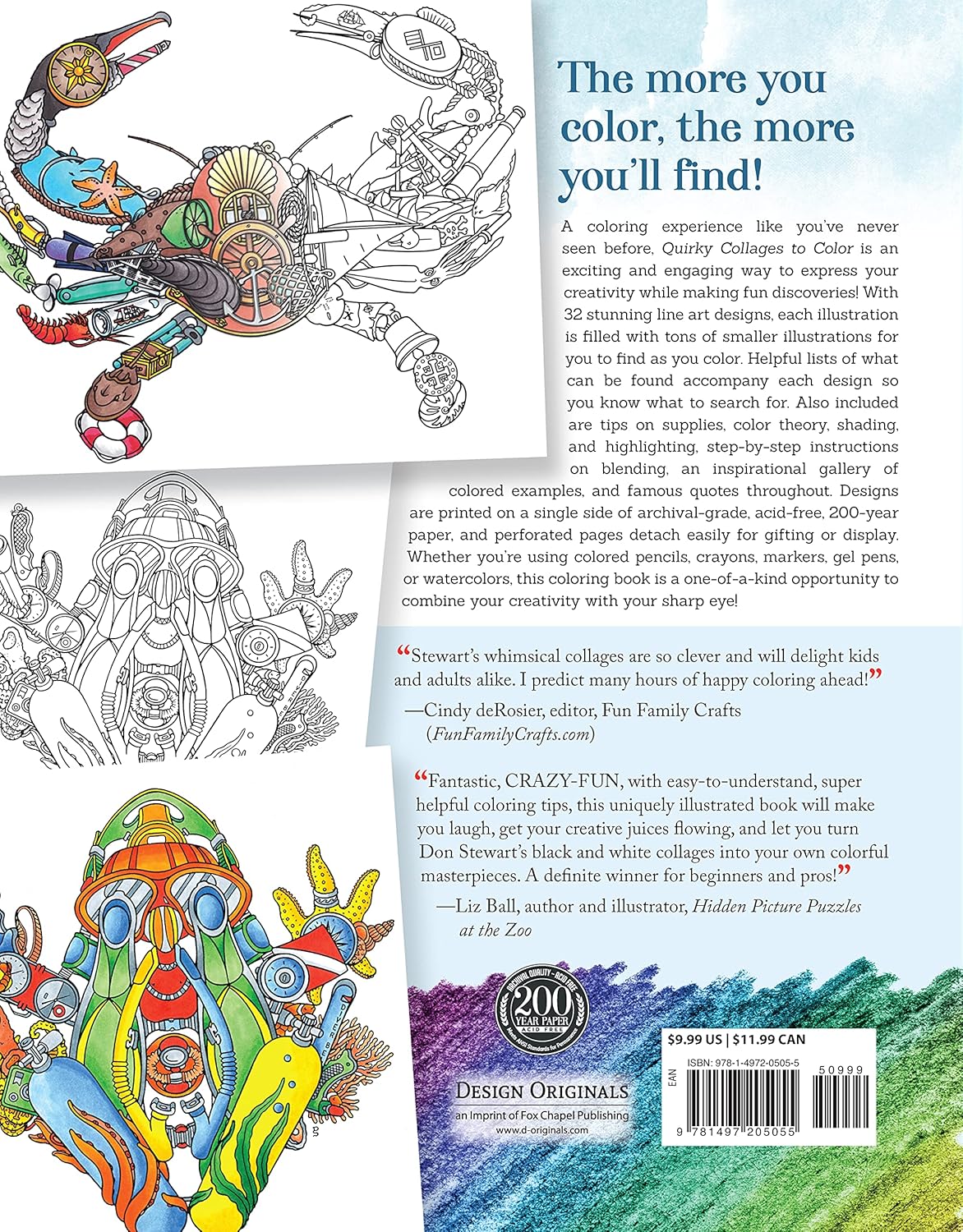 Relax and exercise your mind at the same time! Color and discover hundreds of fascinating objects - the more you look, the more you’ll find. This one-of-a-kind adult coloring book stands out with its intricate artwork that’s made up of hidden objects that’s perfect for puzzle-lovers. Featuring 32 thoughtful and intriguing designs, each contain a variety of elements that act as clever and funny puns relating to the main illustration – and the longer you look, the more you’ll find! Designs are printed on a single side of high-quality, extra-thick paper with perforated edges for easy removal and display. Artist Don Stewart is a retired doctor and former surgeon with an artistic style that decided to pursue his creative talents full-time. An award-winning author and writer for both his short fiction and poetry, he’s also passionate for composite drawings and is the owner of a working studio gallery, DS Art, in Birmingham, Alabama.