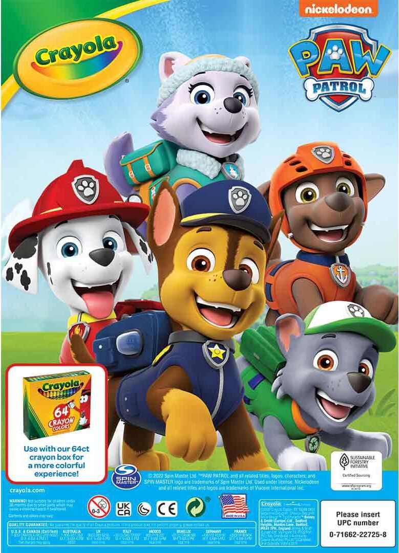 Regular price $5.99Kids can color their favorite puppy first responders with the Crayola Paw Patrol Coloring Book, featuring their characters from Nickelodeon’s Paw Patrol! This coloring book features a whopping 96 pages of art depicting scenes of Marshall, Rubble, Chase and the whole team. Crayola Coloring Books offer kids pages and pages of line art featuring their favorite characters from the big and small screen to color as they please! This book also includes one sheet of stickers to make coloring even more fun! Makes a great gift, especially when paired with a set of Crayola Crayons or Colored Pencils (each sold separately). Ideal for boys, girls or any fans of Paw Patrol ages 3 and up.