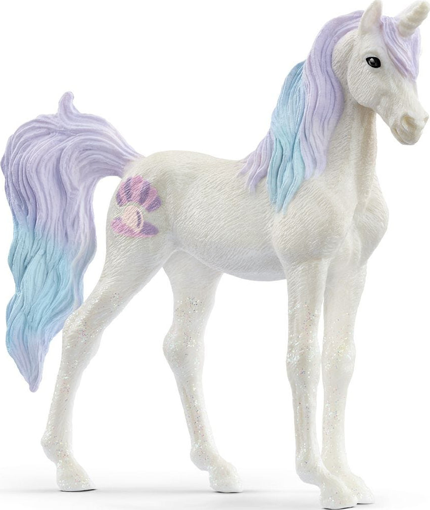 Regular price $9.99The collectible unicorn Pearl really lives up to its name: its white coat shimmers matte just like a pearl. On its flank it bears a pretty tattoo with a large pearl in a shell. The legs are lightly sprinkled with glitter. Its mane is especially beautiful. Like the tail, the thick hair shimmers in shades of purple and blue. This beauty can really turn heads in the playroom.