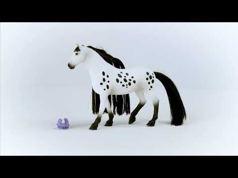 Isn't he beautiful? The Knabstrupper stallion Beauty Horse attracts all the attention with his beautifully spotted coat. But that's not all: His tail and mane are particularly long and luxuriant. Luckily, he always has a finger comb with him so that the long hair can be combed to a silky shine. What should he do with his mane today? Should he get an elaborate braided hairstyle or a few simple braids? But either way, a few hair beads or a bow would certainly not go amiss.