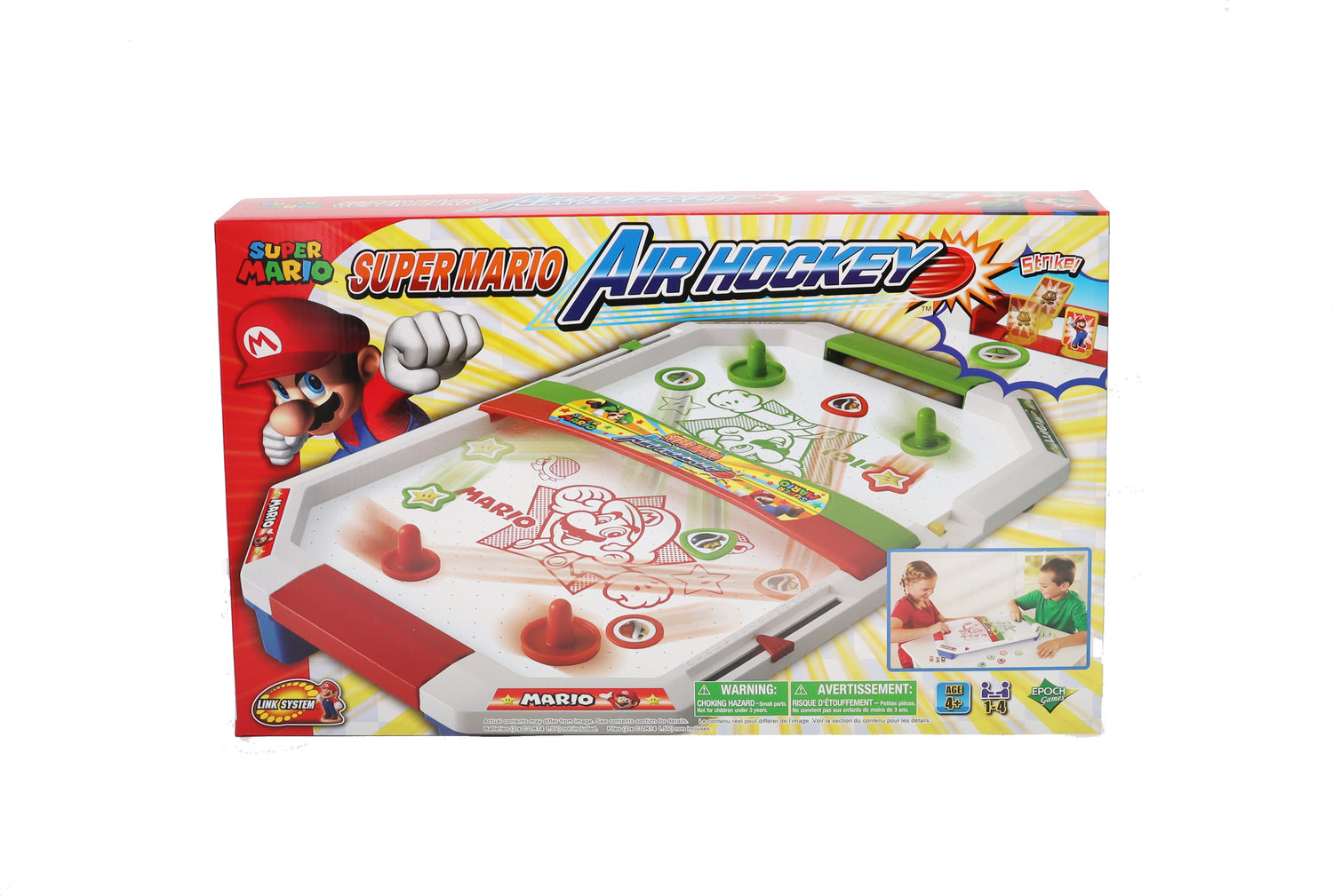 Regular price $57.99High quality games from Epoch and iconic Super Mario Action Figures come together in the newest line of tabletop action games from Epoch Games. Super Mario Air Hockey includes easy-to-assemble platform with 3 Super Mario character plates, 4 paddles in two sizes, 6 unique pucks in 3 shapes and 4 goals. In 2 player mode, choose your paddle and your puck and go head to head against your opponent in a race to 15 goals! In 1 player mode, swap out the goals for target shooting, line up your character plates and have fun practicing your aim as you try to knock down the targets and score! Epoch Games Link System allows Super Mario Action Figures from Balancing Games, Blow Up! Shaky Tower and Piranha Plant to play across the range of games including in one player mode in Air Hockey. Suitable for the whole family, including children ages 4 and older.
