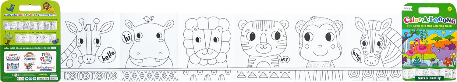 Color-A-Looong 5' Fold Out Kids Coloring Book - Safari Family