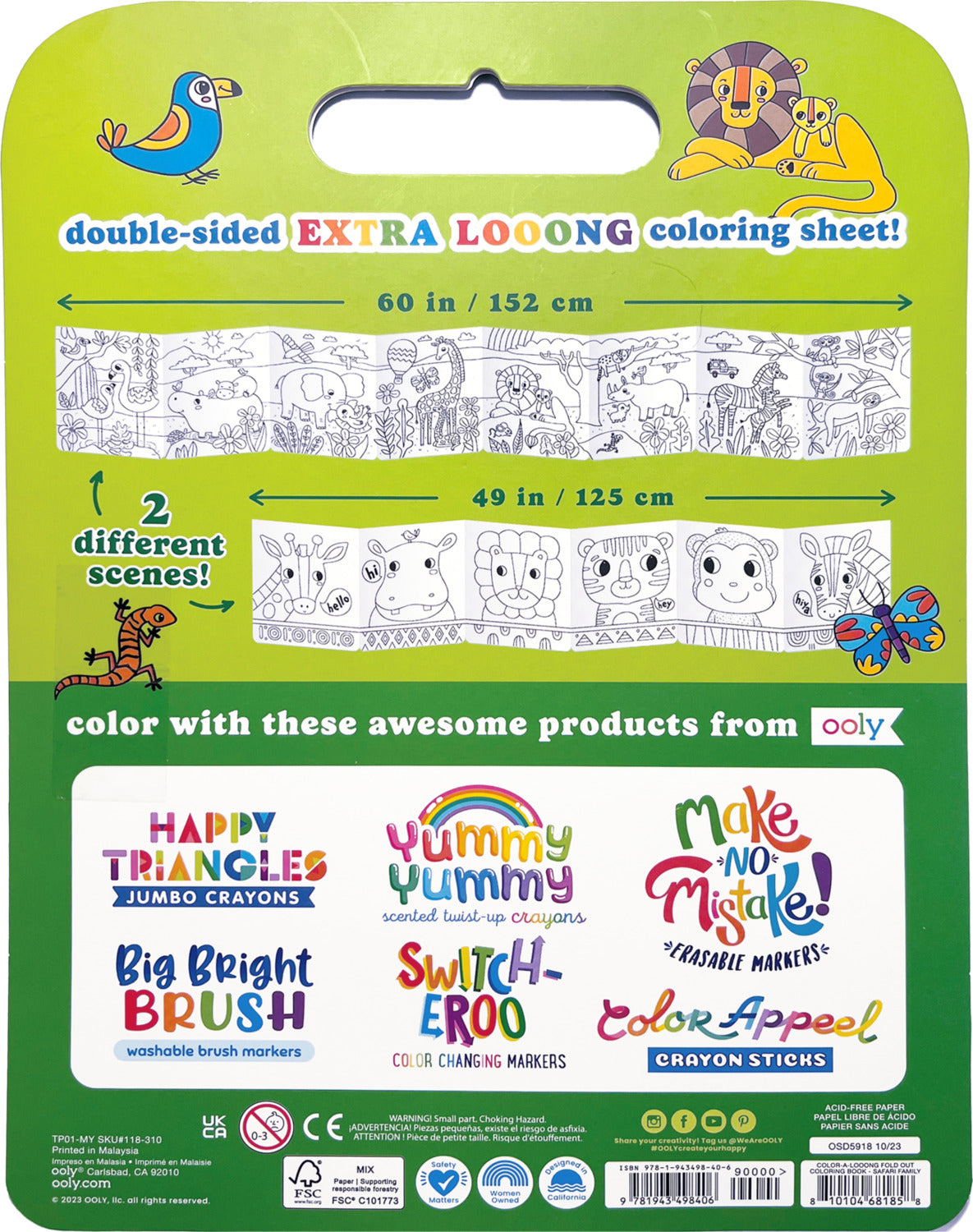 - Five-foot fold out coloring book