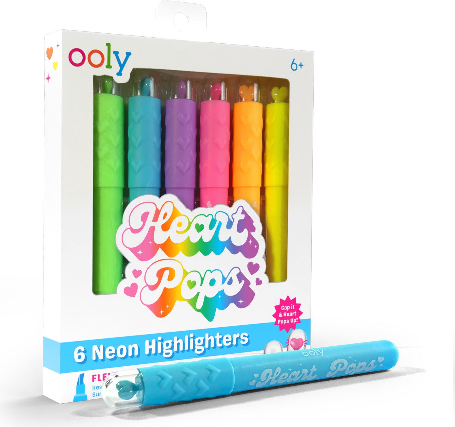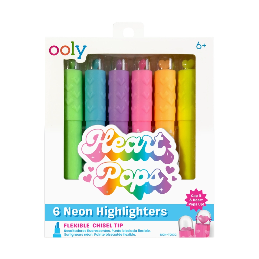 Regular price $16.99Whether you're tackling homework, planning your schedule, or studying for exams, these neon highlighters make organizing fun and stylish. Their cute heart-themed design adds a touch of charm, making them a must-have for kids and students who love playful supplies. They’re perfect for school, home, or on-the-go highlighting. A set of 6 cute highlighters in neon colors Unique flexible chisel tip bends for smooth, steady highlighting Create thick or thin lines for precise highlighting and underlining Fun heart-shaped design adds an adorable touch Heart pops up when capped Perfect for homework, studying, and planning Suitable for ages 6 and up