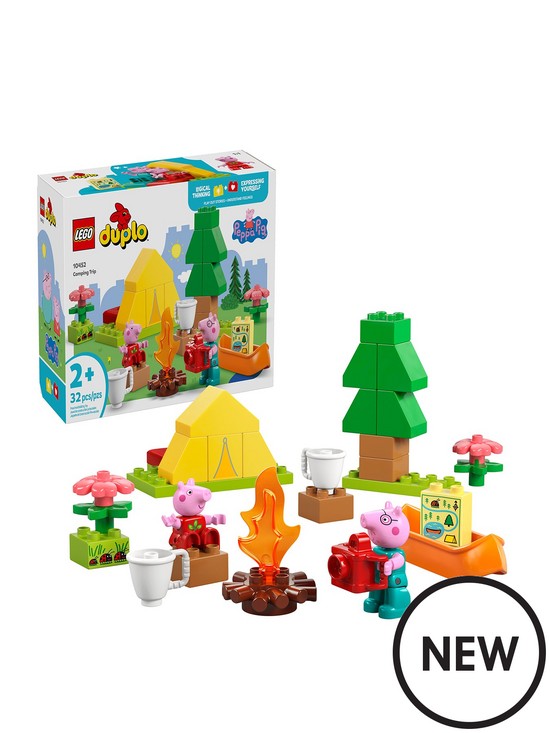 Toddlers embark on a LEGO® DUPLO® Peppa Pig adventure with the Camping Trip (10452) building playset. Through creative play, preschoolers explore how they feel about first-time experiences as they make-believe camping with Peppa Pig and Daddy Pig, then explore a river in the toy canoe.