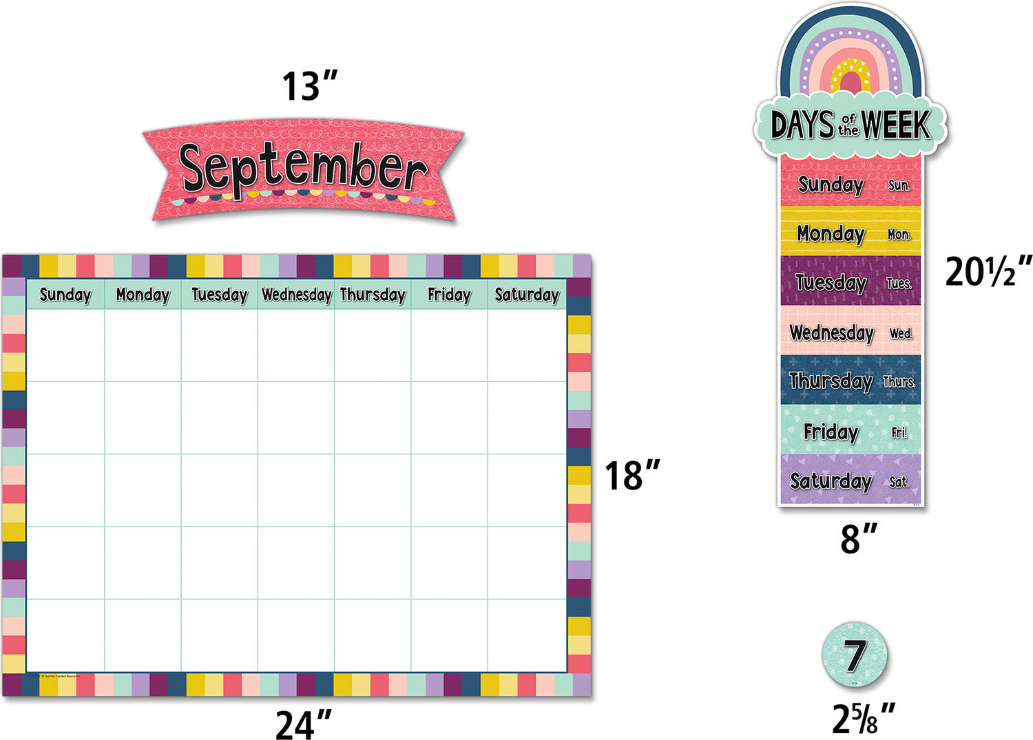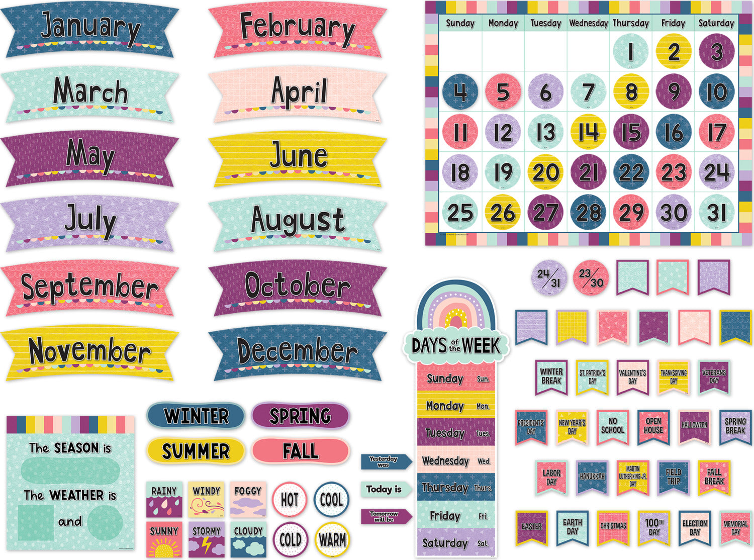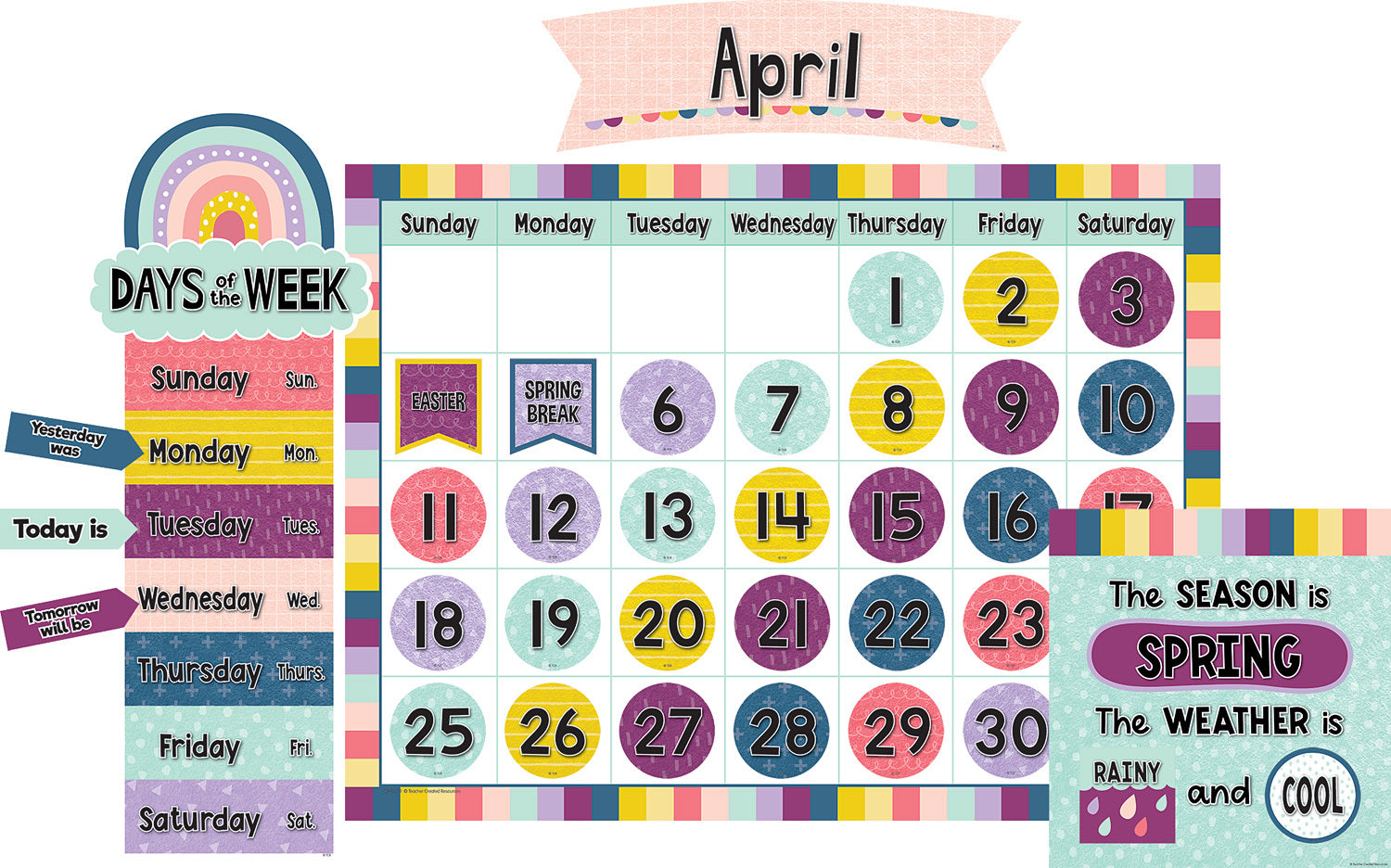Regular price $17.99Oh Happy Day Calendar Bulletin Board, by Teacher Created ResourcesThis boho-chic calendar display comes with easy-to-read number pieces, monthly headers, and additional pieces for holidays and special occasions as well as pieces for yesterday, today...