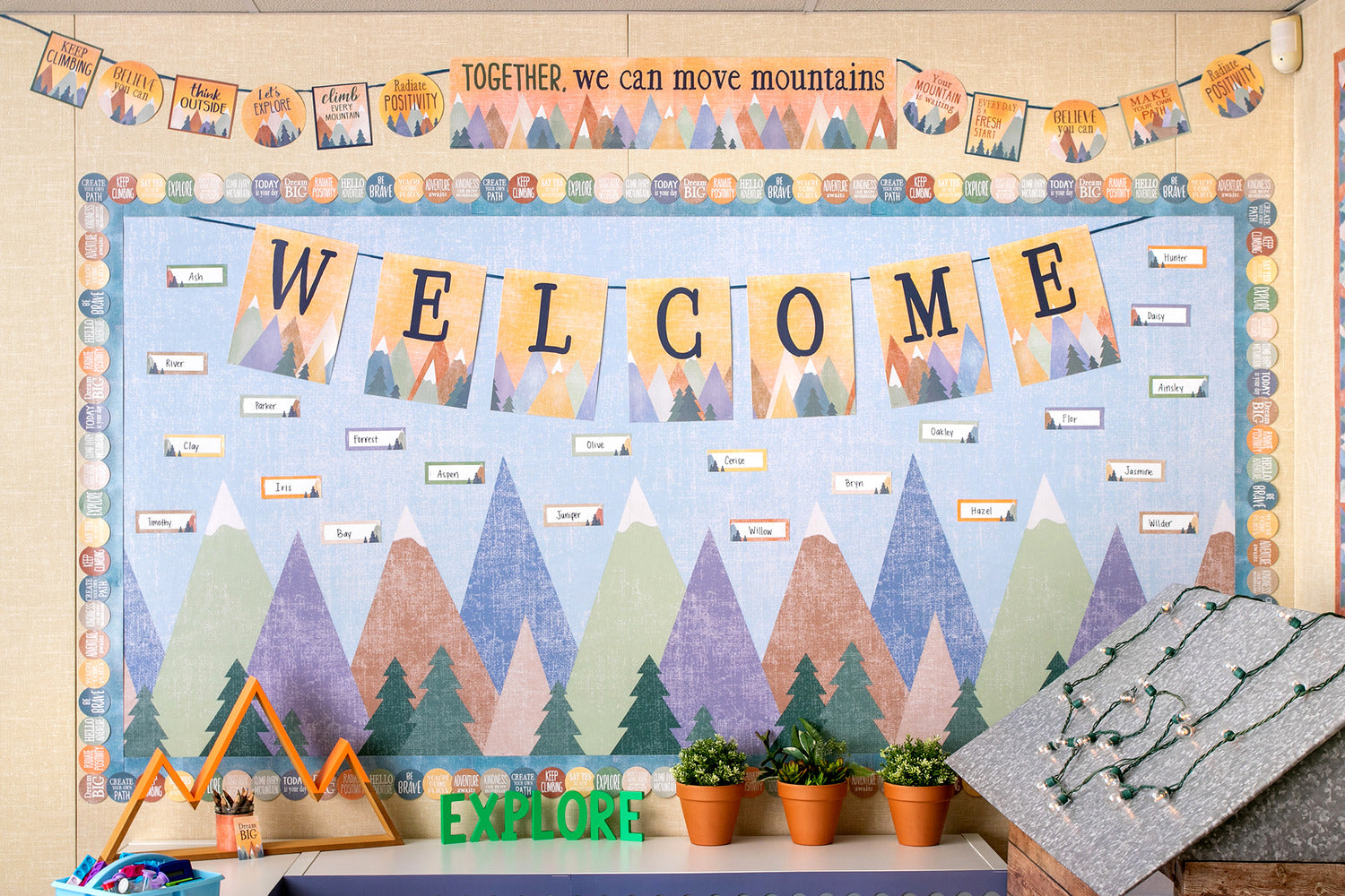 MOVING MOUNTAINS WELCOME BULLETIN BOARD MOVING MOUNTAINS DÉCOR BULLETIN BOARDS