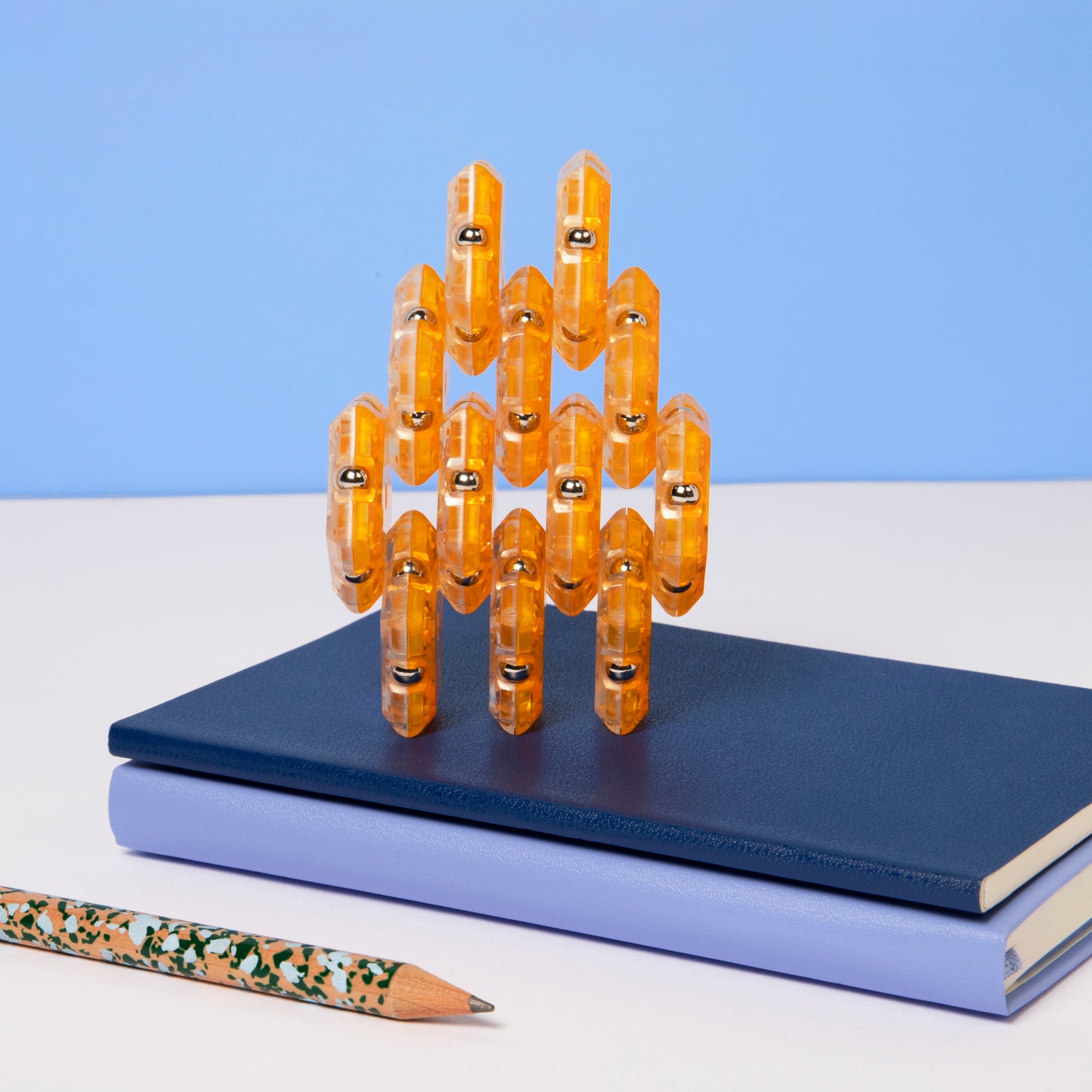 The magically self aligning fidget sphere! On-the-desk or on-the-go, Geode is the perfect fidget desk toy. Each set includes 12 pentagons that align and snap into place perfectly every time.