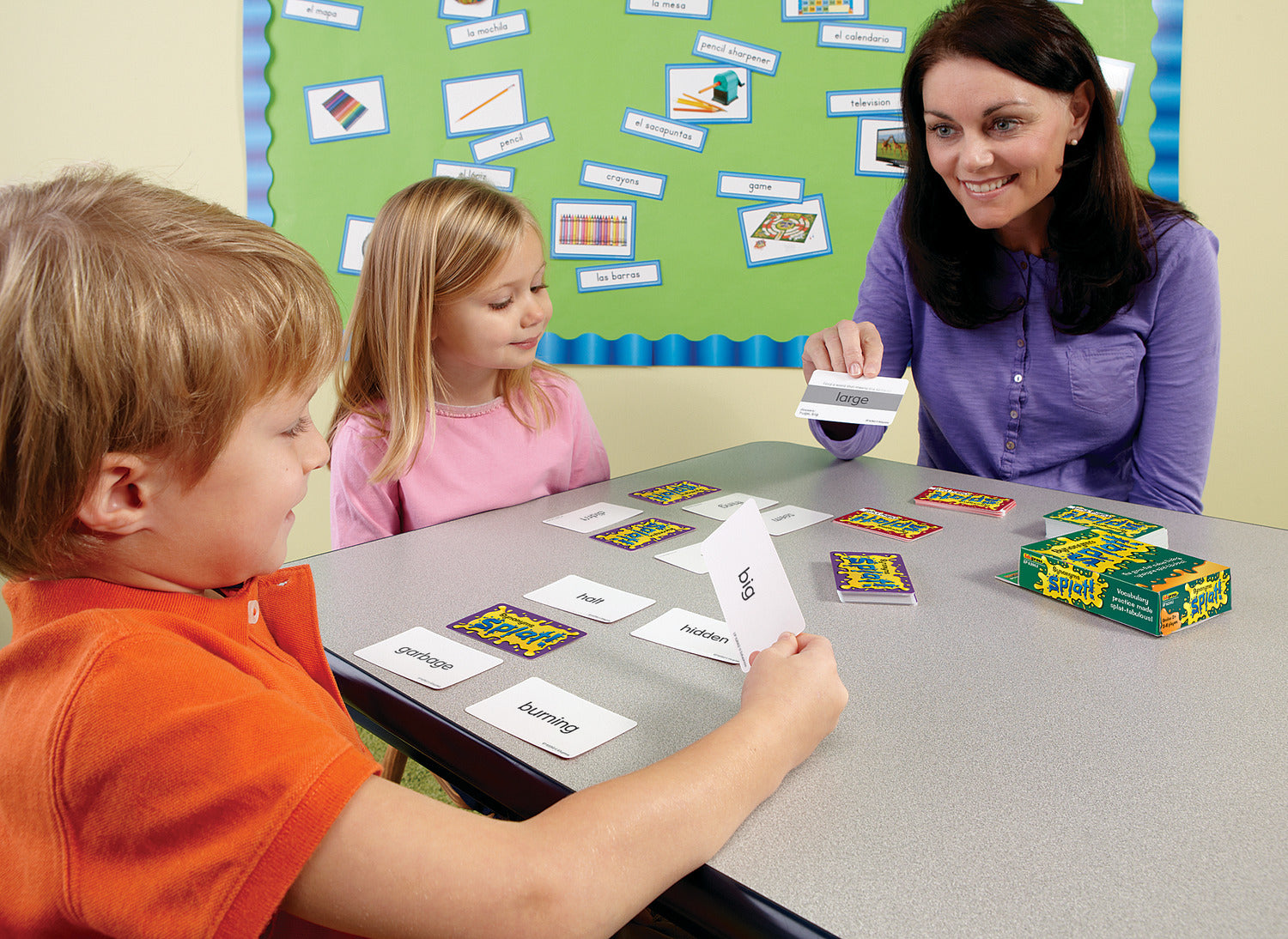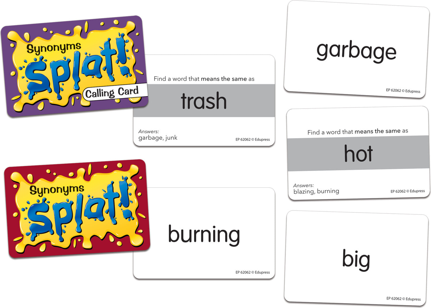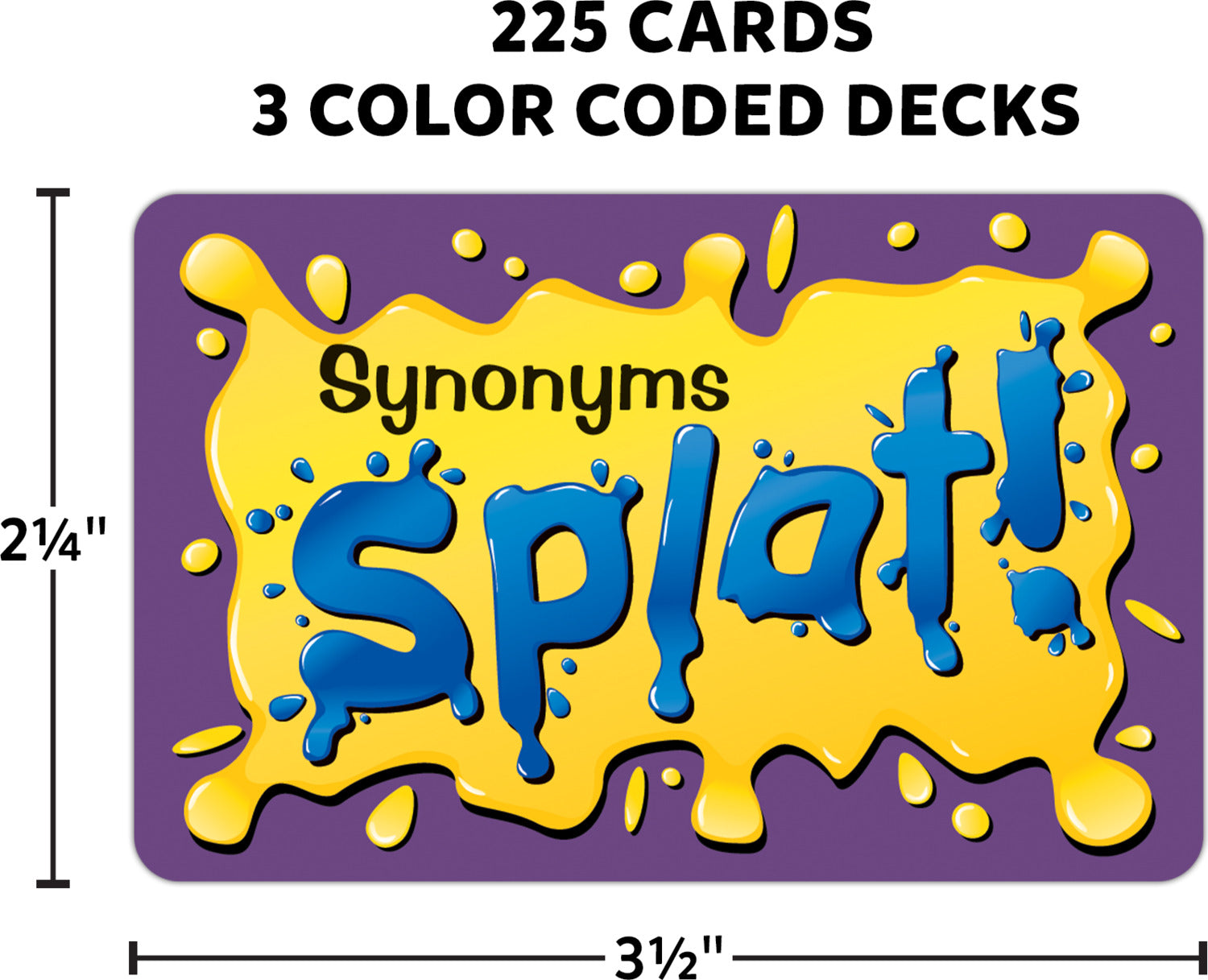 Regular price $17.99Fast-paced games provide practice for beginning reading skills! As the caller reads each card aloud, players scan the cards in front of them. If the player's card matches the clue, the player says "SPLAT!" and flips the card over. The first player to flip over all of their cards wins. With three color-coded decks, there are three games in every Splat! box. For 2-6 players. Set of 225 cards: 75 Calling Cards & 150 Answer Cards. Includes easy directions for more learning time!