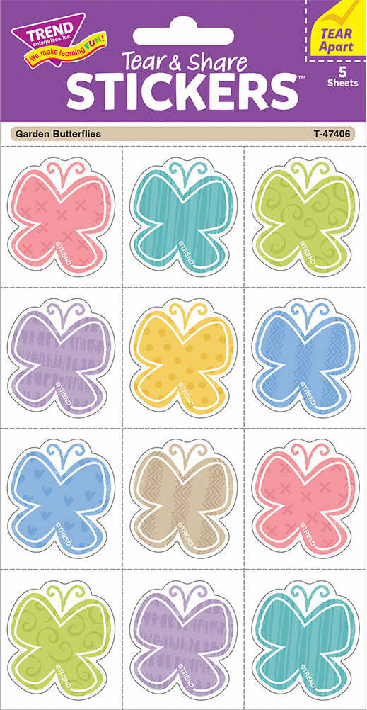 Garden Butterflies Tear and Share Stickers (60 Ct)