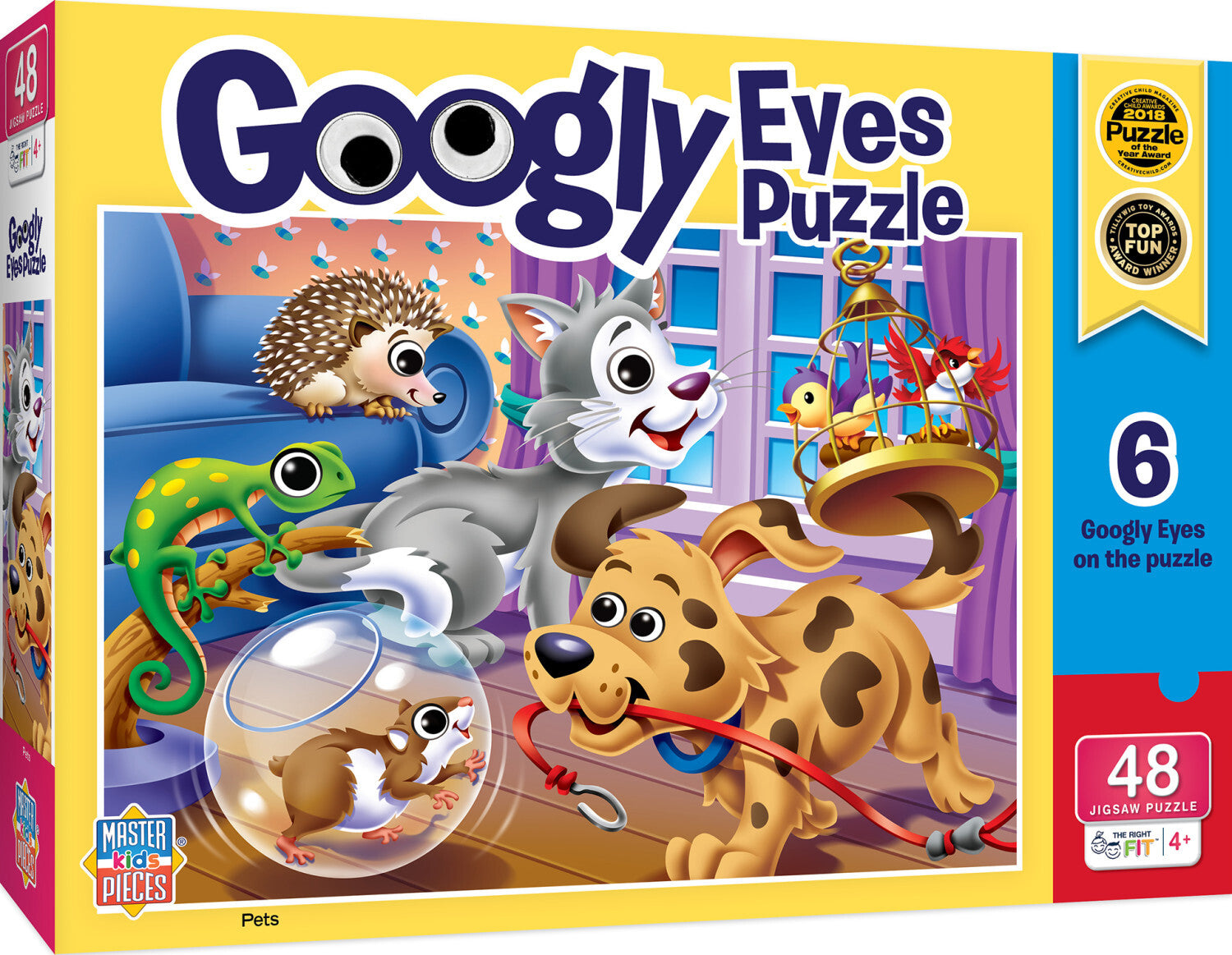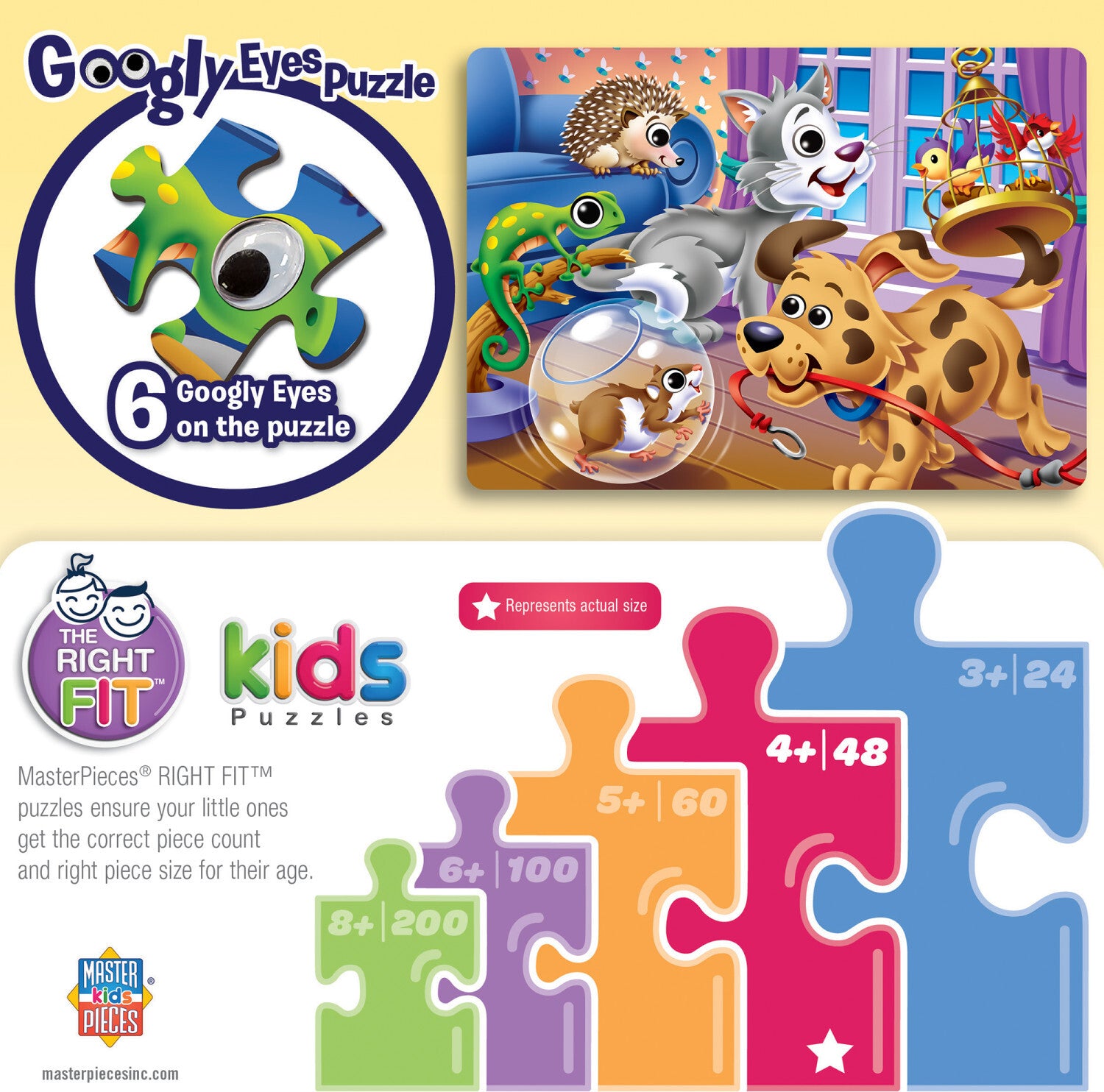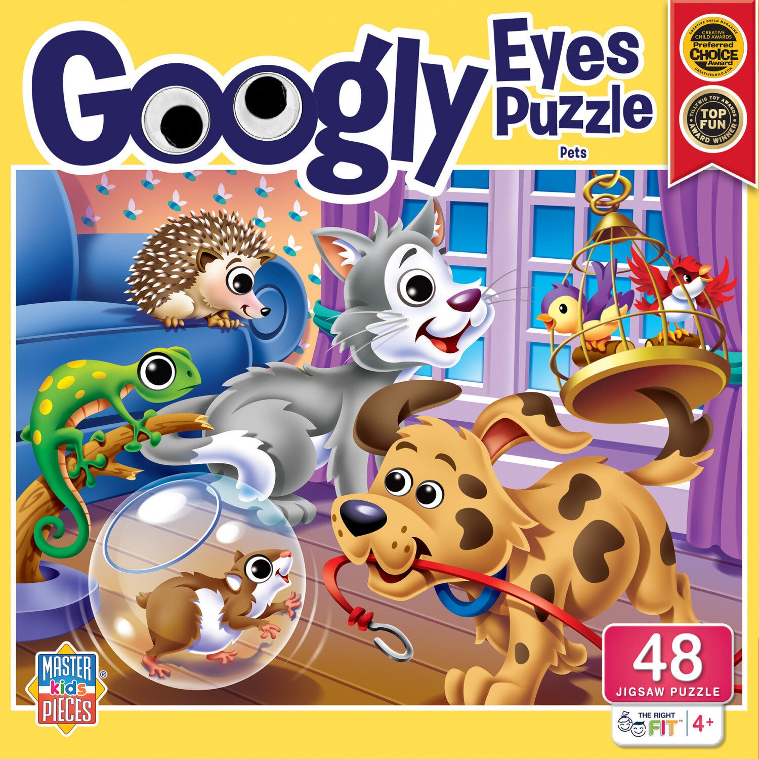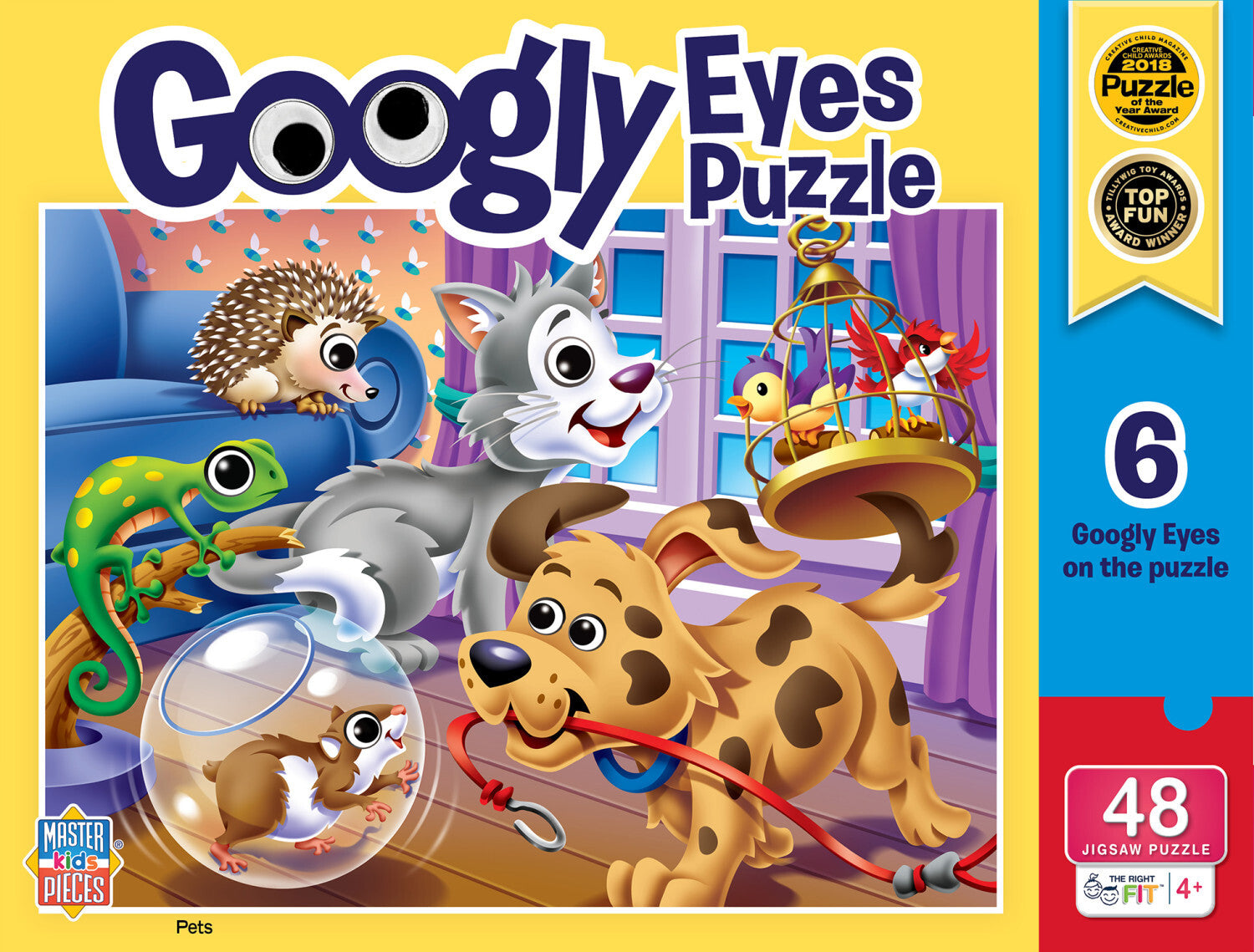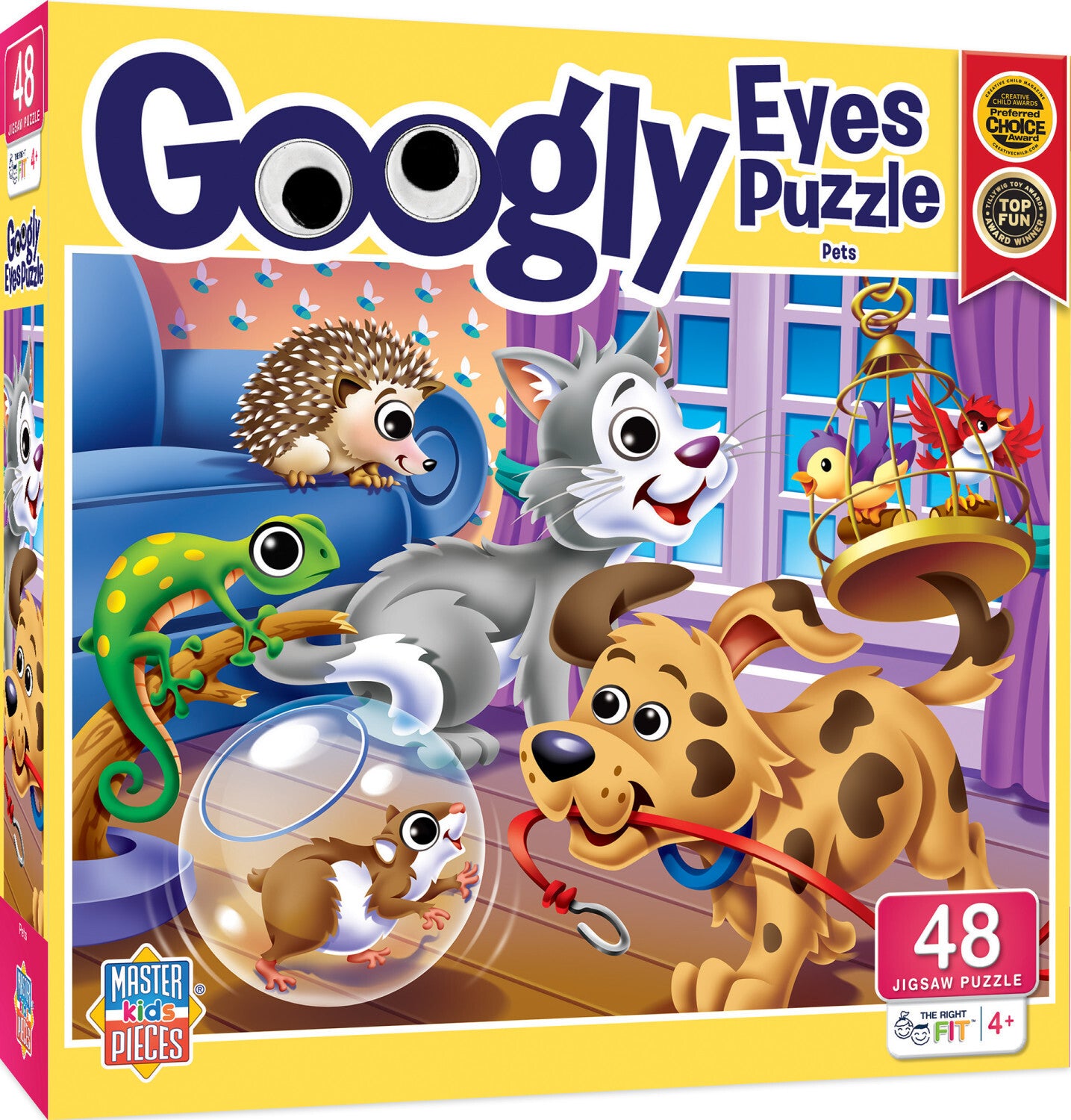 This MasterPieces 48pc Pets Googly Eno Puzzles are a great way to have even more fun with puzzles! These are the perfect puzzles for children ages 6 and up. Complete with 8 pre-mounted, factory-secured wiggly and googly eno. Your children are sure to be entertained for hours!