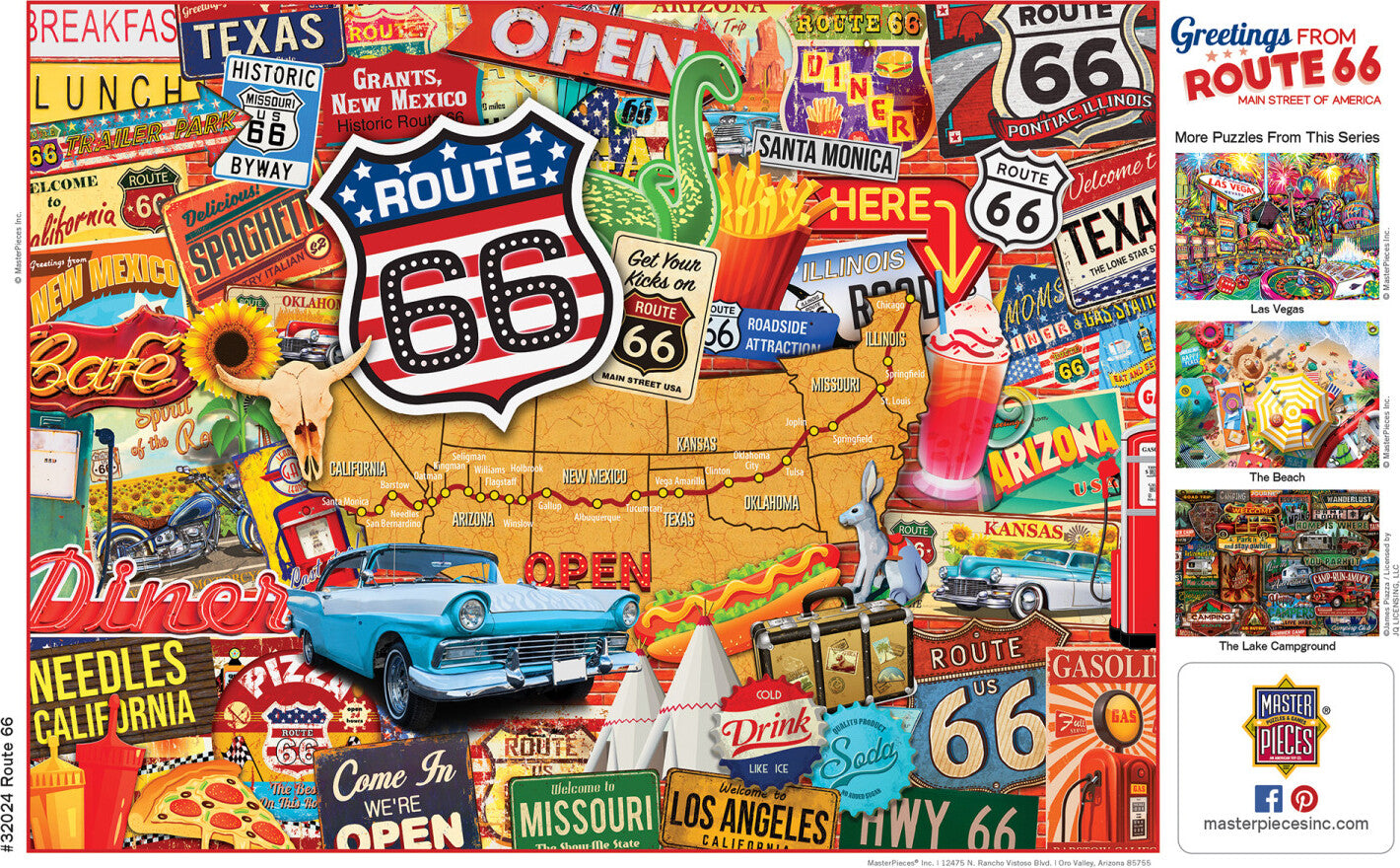 This MasterPieces Route 66 550 Piece Jigsaw Puzzle that measures 24" x 18" is perfect for both children and adults aged 14 and up. Delve into the history of US 66, which underwent various improvements before being officially removed from the US Highway System in 1985. However, you can relive its glory days with portions of the road in Illinois, Missouri, New Mexico, and Arizona, now designated as the "Historic Route 66" National Scenic Byway. Immerse yourself in the nostalgia of America's original highway, all while contributing to the environment. Crafted from recycled chipboard, this puzzle allows you to have fun while making a sustainable choice.