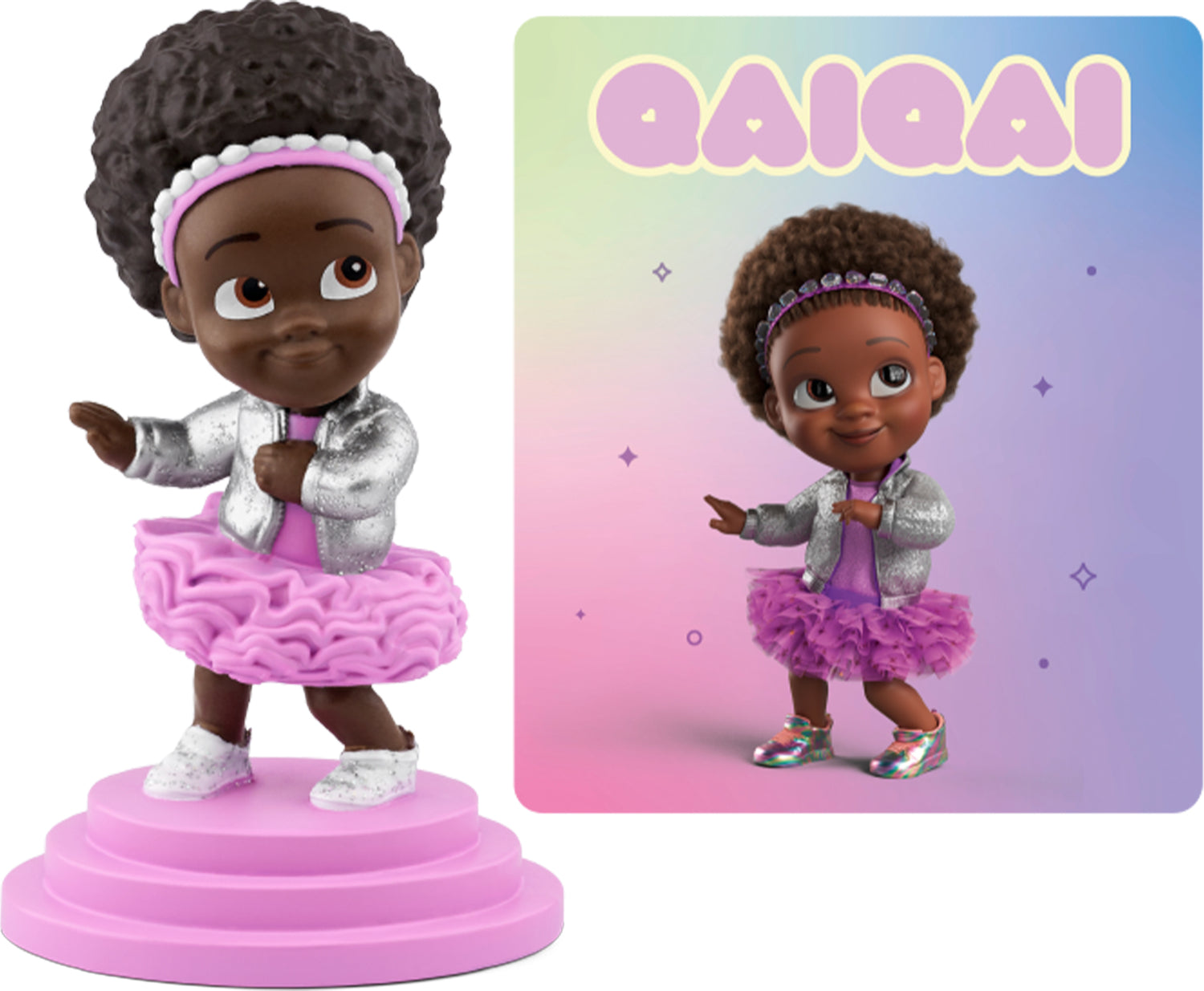Join Qai Qai and her playful DJ companion Ruff Ruff on charming adventures, from magical gardens to fairy tales about discovering your true worth. Qai Qai's quick wit and joyful spirit make every adventure unforgettable as young listeners dance along to uplifting songs like "Queen Things," "Dancing on the Moon," and "Best Friend." This delightful tonie features six captivating stories and original hit songs celebrating confidence, friendship, and imagination.