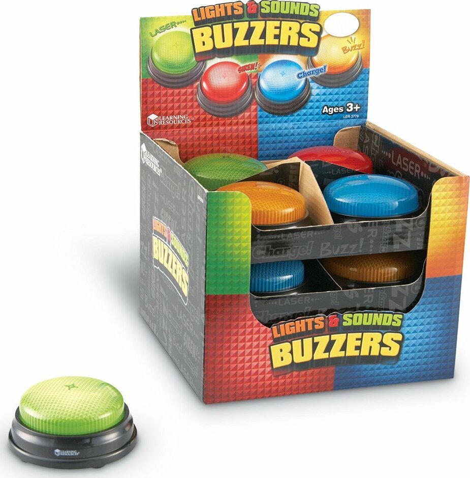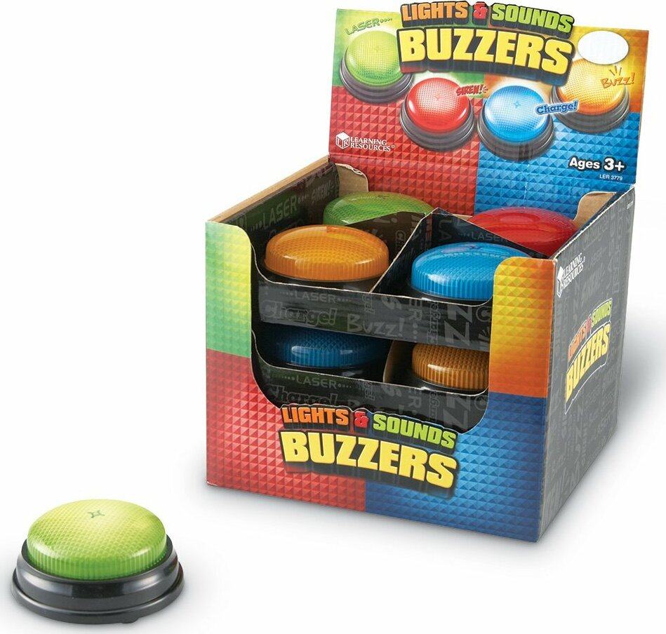 Boost student response during any class activity or game! Sounds mimic real-world objects that light up- siren, game-show, laser, and "charge!"