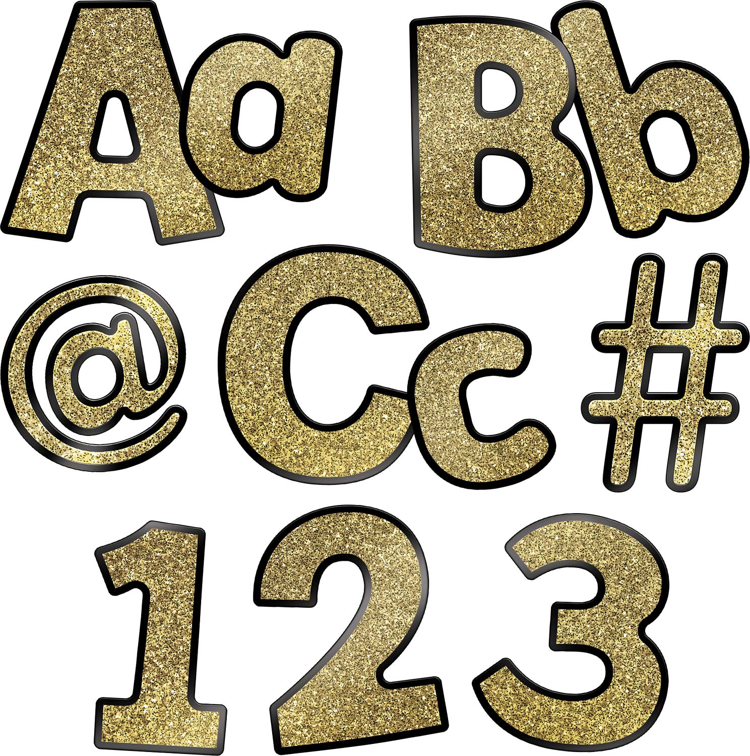 Regular price $17.99Create displays with the Sparkle + Shine Collection EZ Letters combo pack. This 219-piece pre-punched set includes these pieces:-70 uppercase letters-87 lowercase letters-20 numbers-20 punctuation marks-22 symbolsAll characters feature gold glimmer to help your message stand out! Take your displays from dull to dazzling with Carson-Dellosaï¾’s EZ Letters. These letters add a stylish touch to any classroom, and you can use them for any grade. Make sure to view other Sparkle + Shine products to create a cohesive classroom theme.