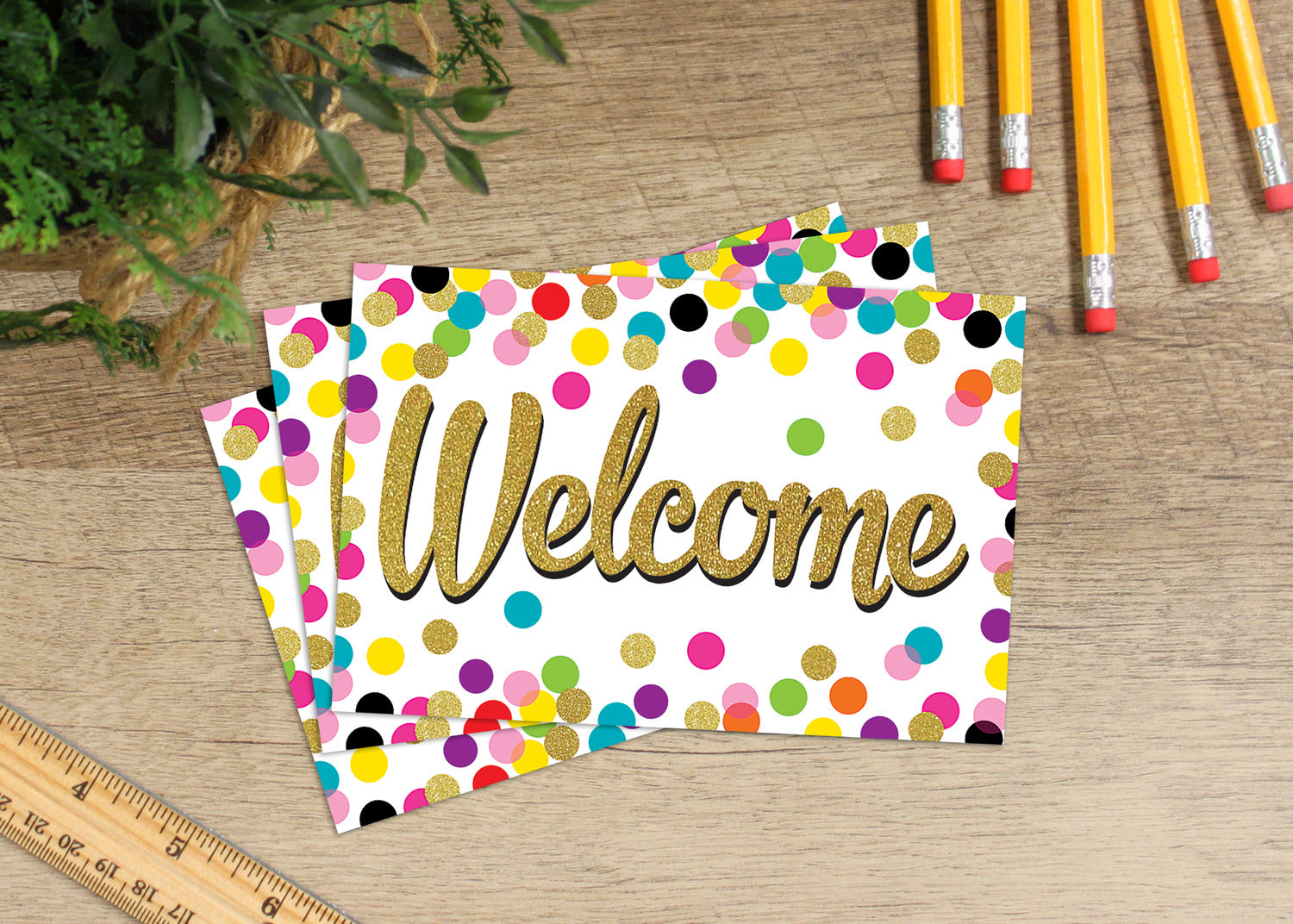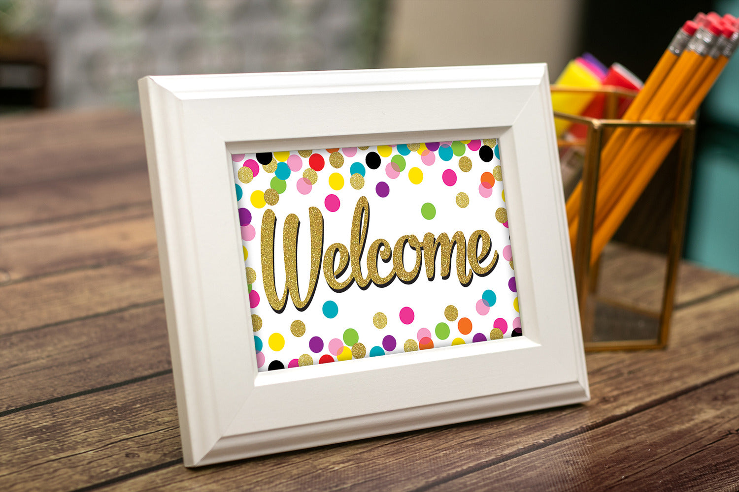 Use this Confetti Classroom theme to celebrate learning every day! This bright and beautiful collection will deliver smiles and fun throughout the school year. An assortment of colorful paper fans will add a whimsical and festive touch. Hang them from the ceiling or mount them on a bulletin board, and add some accent pieces to create your own unique display