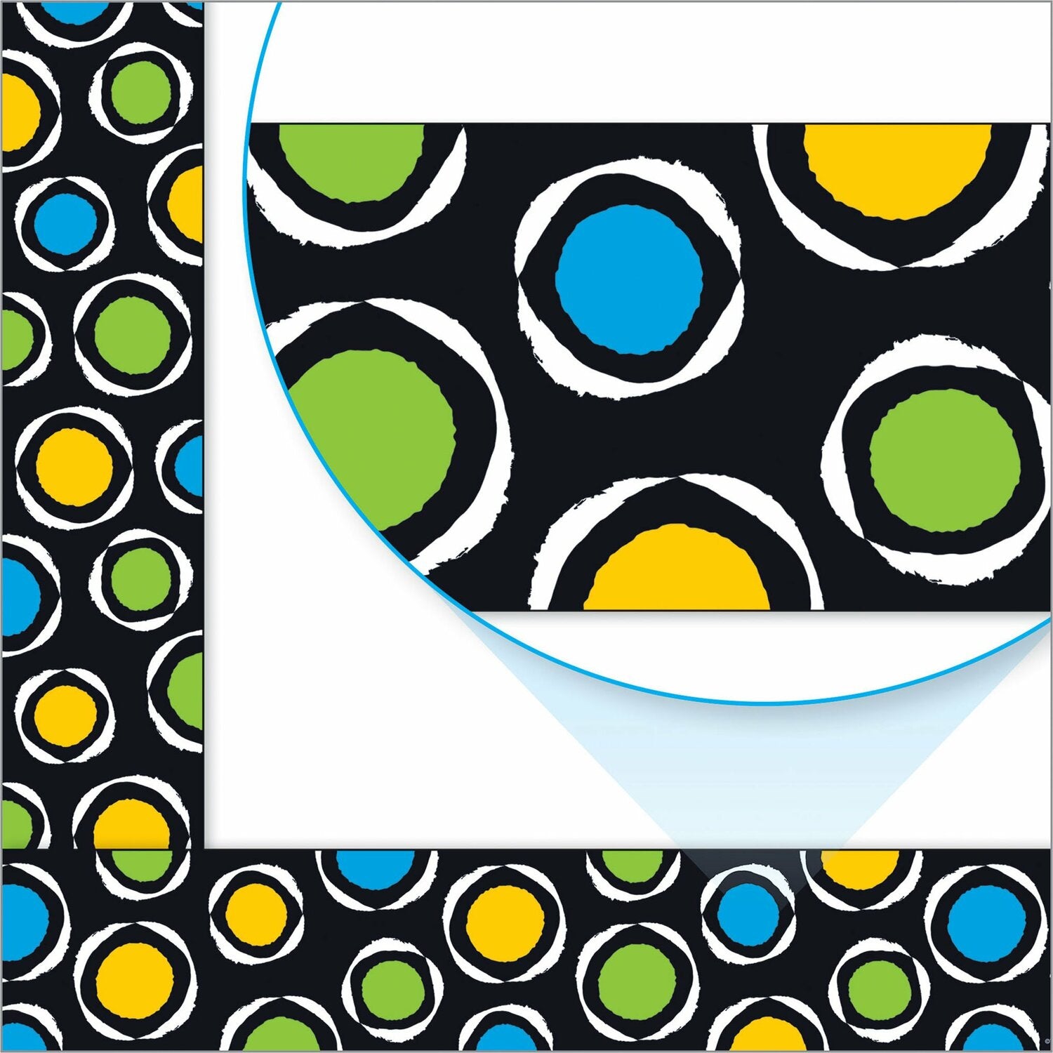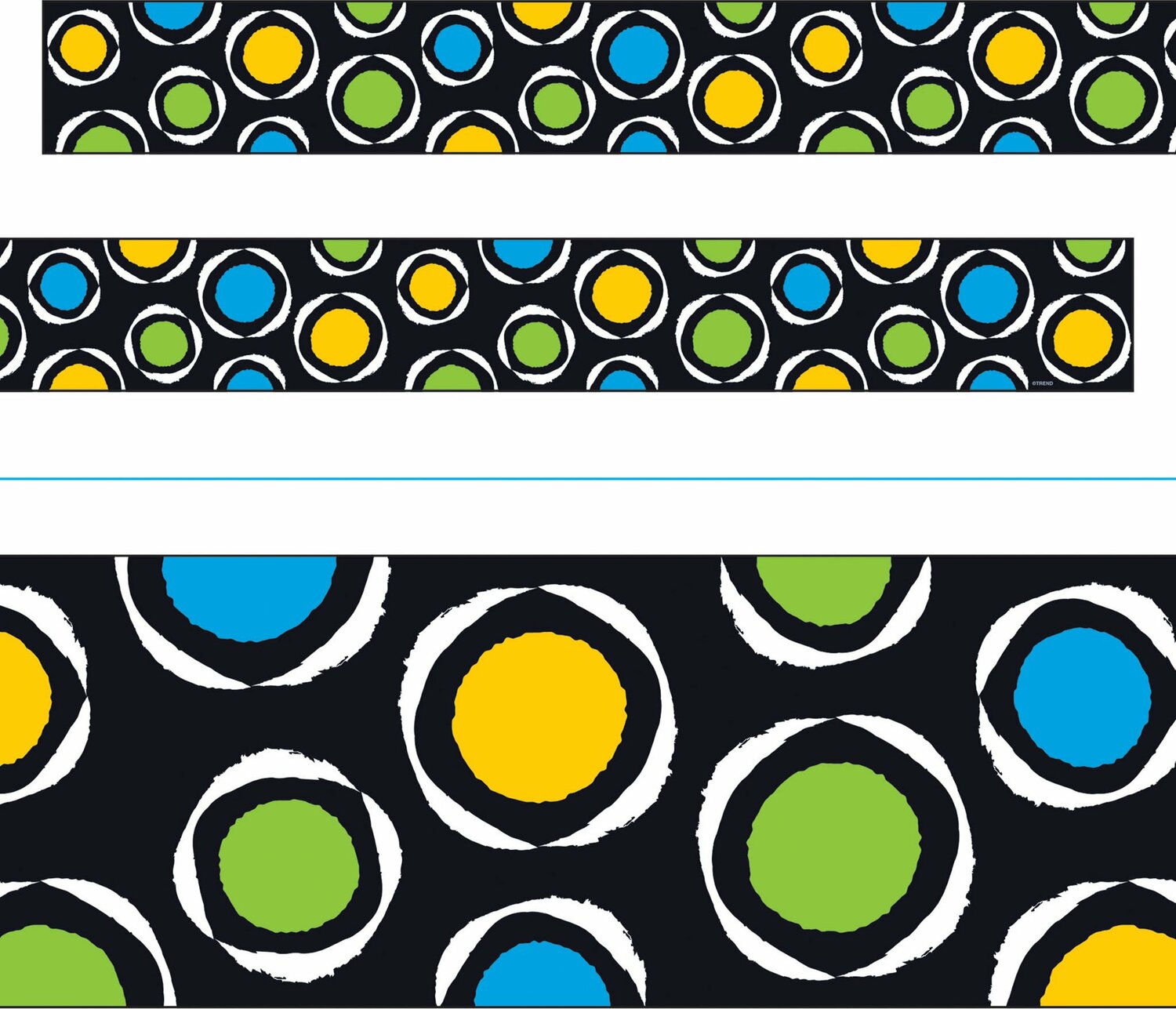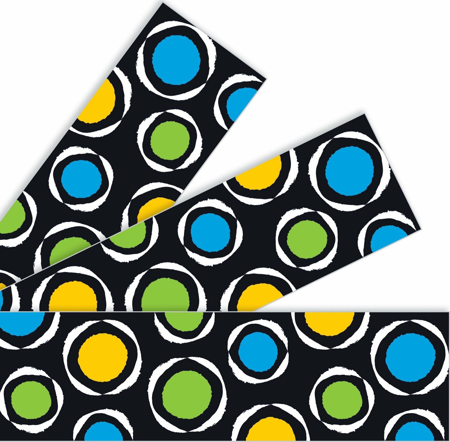 Energize spaces and places and set the stage for learning success with contemporary designs and fun patterns. Showcase student work; display bulletin boards with flair; add pizzazz to scrapbooks, crafts, and projects - the possibilities are endless! 2 3/4" x 35 3/4' per pack. Precut, durable, reusable.