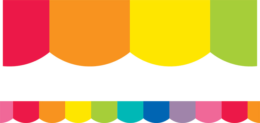 Regular price $8.99Showcase your displays with Hello Sunshine Rainbow Scalloped Borders! These borders feature 7 bold colors with a color block design. This border pack includes 13 strips—each measuring 3' x 3" for a total length of 39'.