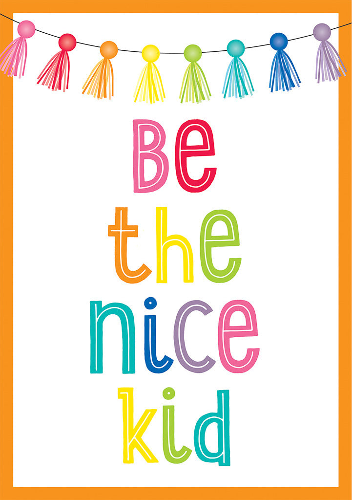 Regular price $4.99Give students daily encouragement with motivational posters. The 13 3/8" x 19" Hello Sunshine Be the Nice Kid Poster features a design of colorful tassels and an inspiring message to help promote a positive attitude.