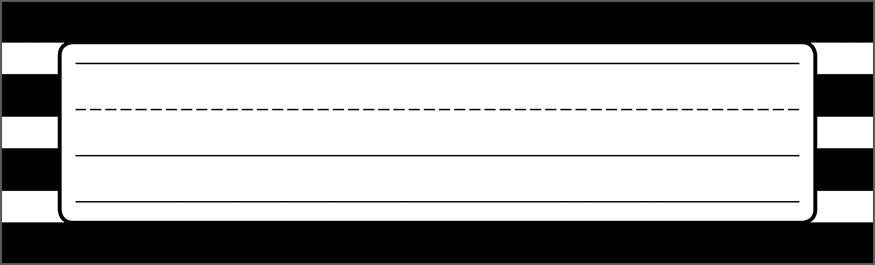 The Simply Stylish Black & White Stripe Nameplates for students provide an easy way to label and organize your classroom. This pack includes 36 desk nameplates-each measure 9.5" x 2.875" and feature a classic stripe design.