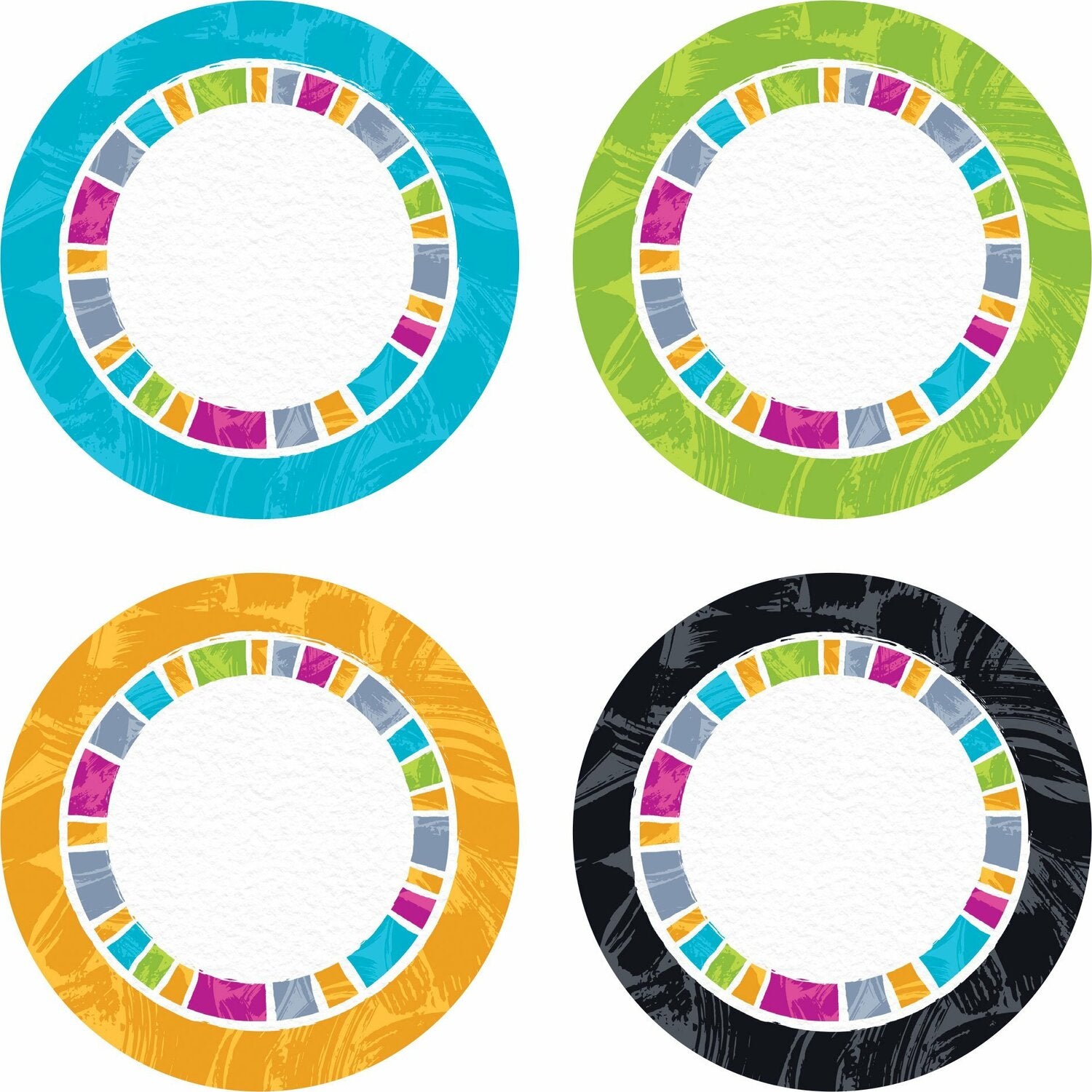 Regular price $10.99Vibrant designs energize spaces and delight and engage viewers. Label containers, lockers and centers, accent displays, decorate walls and posters, showcase student work, inspire creative writing, and reward accomplishments. Endless possibilities! Precut and ready to use. Circles in six different color combinations, 5-1/2" tall.