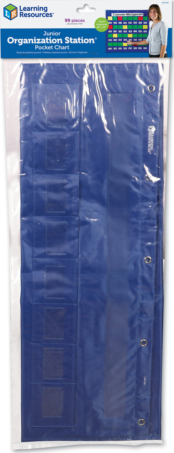 Regular price $34.99Junior Organization StationMake each student a pocket for hall passes, book checkouts, lunch tickets, homework completion, behavior tracking and more. Includes 32 blank name cards, 32 blank 5"L x 3"H cards and 2 double-sided title cards. Vinyl organizer measures 28"L x 27"H.LER 2258