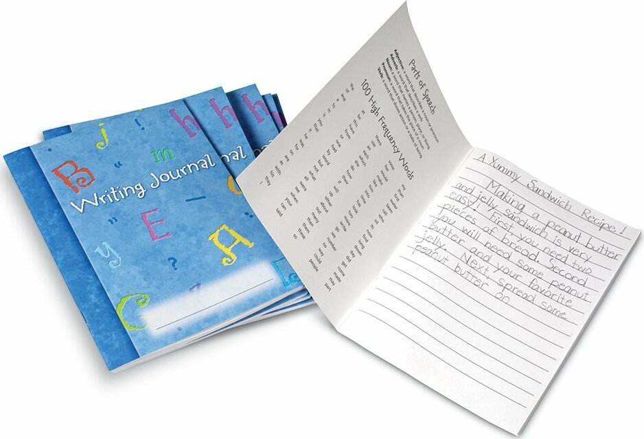 Writing Journal Inside covers provide definitions for the parts of speech, a list of commonly misspelled words and 100 high-frequency words. Includes 64 lined pages. Grades 1+ LER 3467 Set of 10