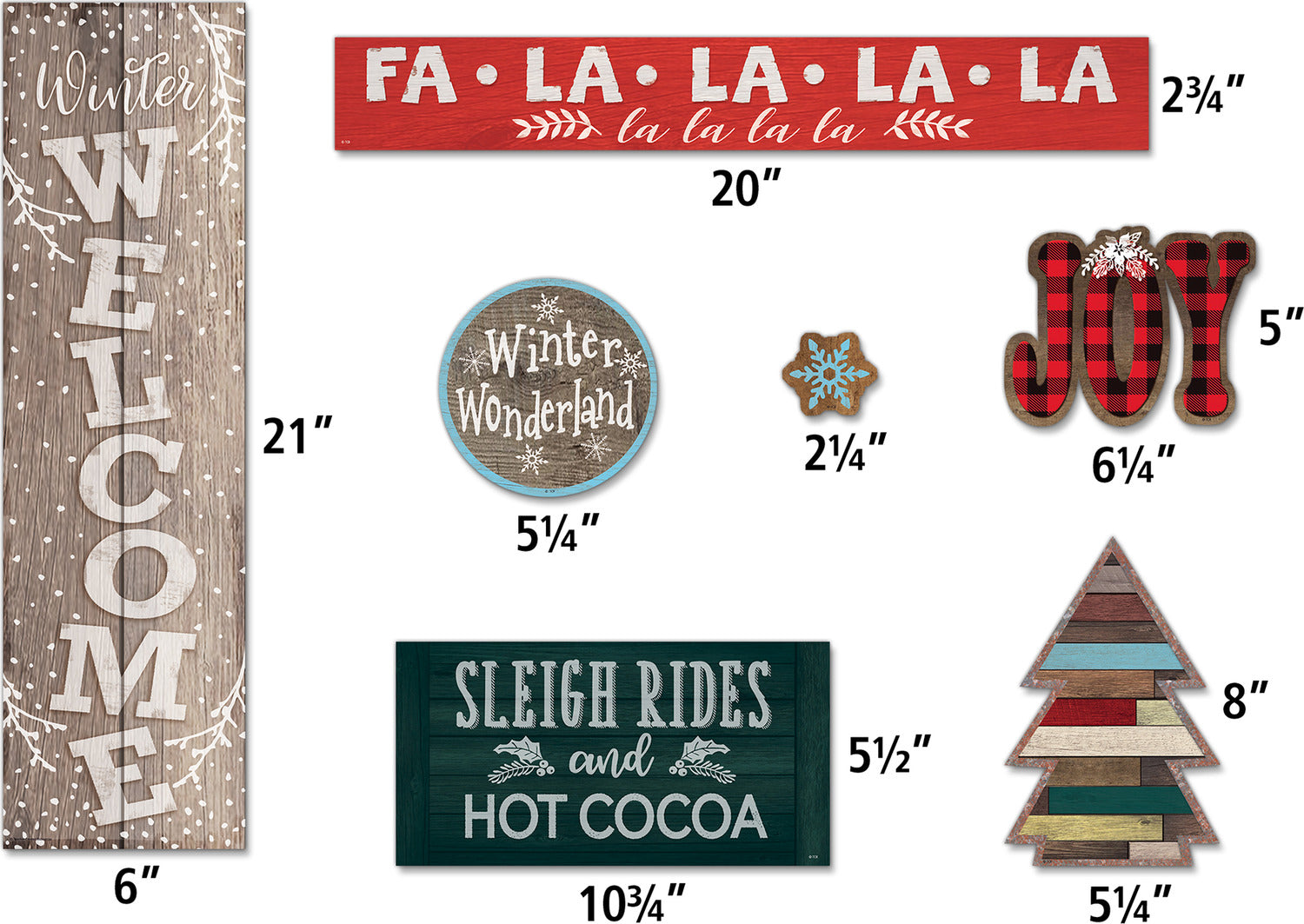 Regular price $11.99Celebrate the season with this winter-themed mini bulletin board set. The farmhouse-inspired signs feature seasonal sayings that add a perfect touch of winter fun to your classroom. Largest piece measures 21" x 6". 22 total pieces.