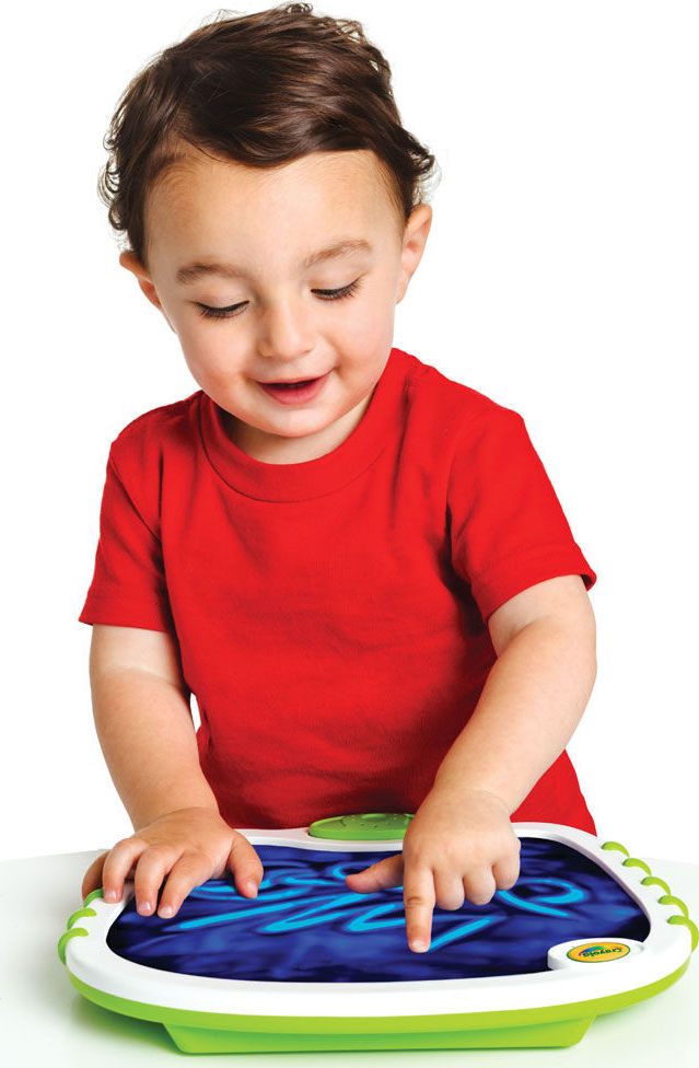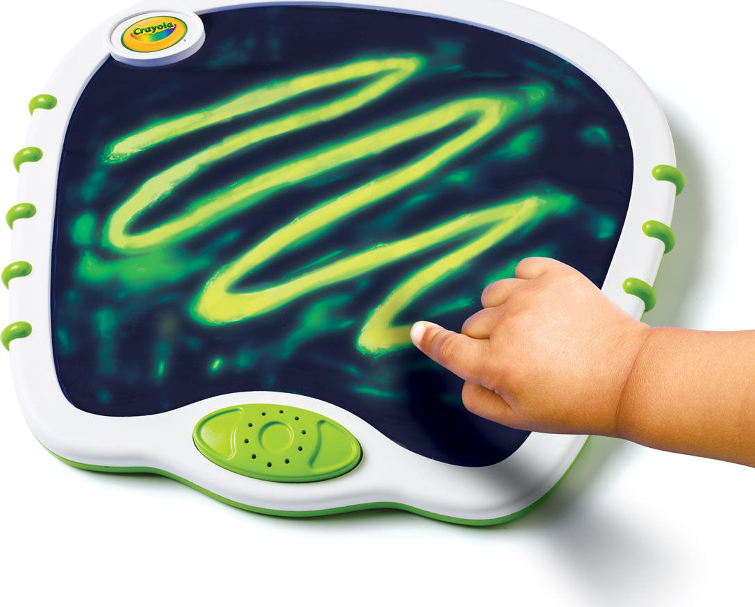 New My First Crayola Touch Lights is a mess-free, portable doodle board that lights up and plays music. Includes Touch Lights unit with 6 songs, 12 light colors, and instructions in this Art Set. Sealed gel surface is safe for doodling with fingers and never leaves a mess. This reusable coloring tablet has exciting lights and sounds to enhance creative play. Requires 3 AA batteries (not included). Safe and nontoxic for beginner unisex child, 24 months and up.