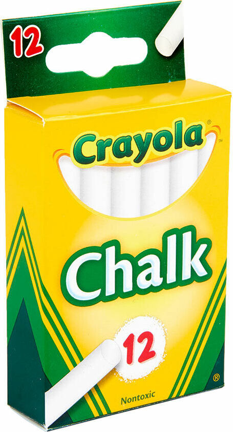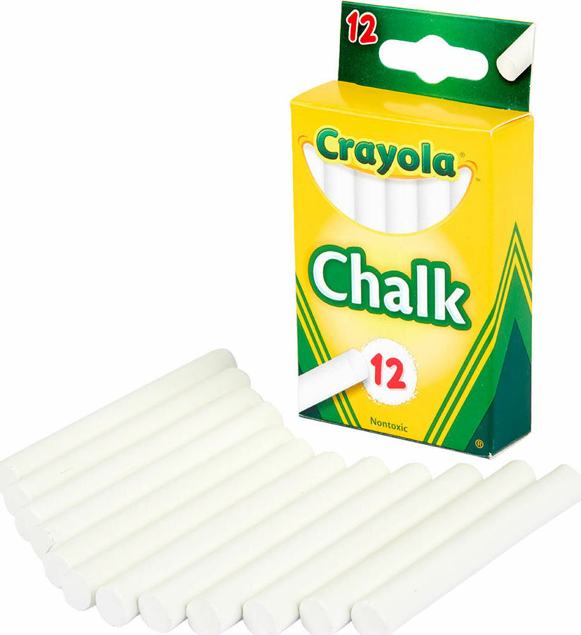 Crayola Chalk gives you solid, consistent color in a strong stick that resists breaking! It's available in your choice of all while or color chalk. The color chalk set features 2 each in Red, Orange, Yellow, Green, Blue, and Violet. Use it on chalkboards, construction paper, cardboard, craft paper, and brown paper bags. It's safe and nontoxic for adults and kids, ages 3 & up. Inspire creative play with colored chalk that makes a vibrant color statement! Stock up classrooms and craft rooms with colorful chalkboard supplies for kids. If you're looking for art easel supplies, this set would make a great option.