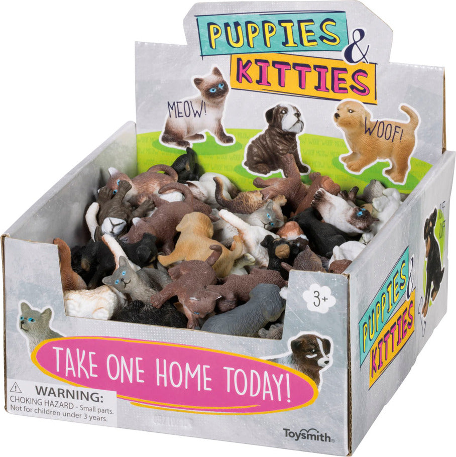 Mini puppy and kitten figures approximately 2in long. Assorted styles. 3yr plus