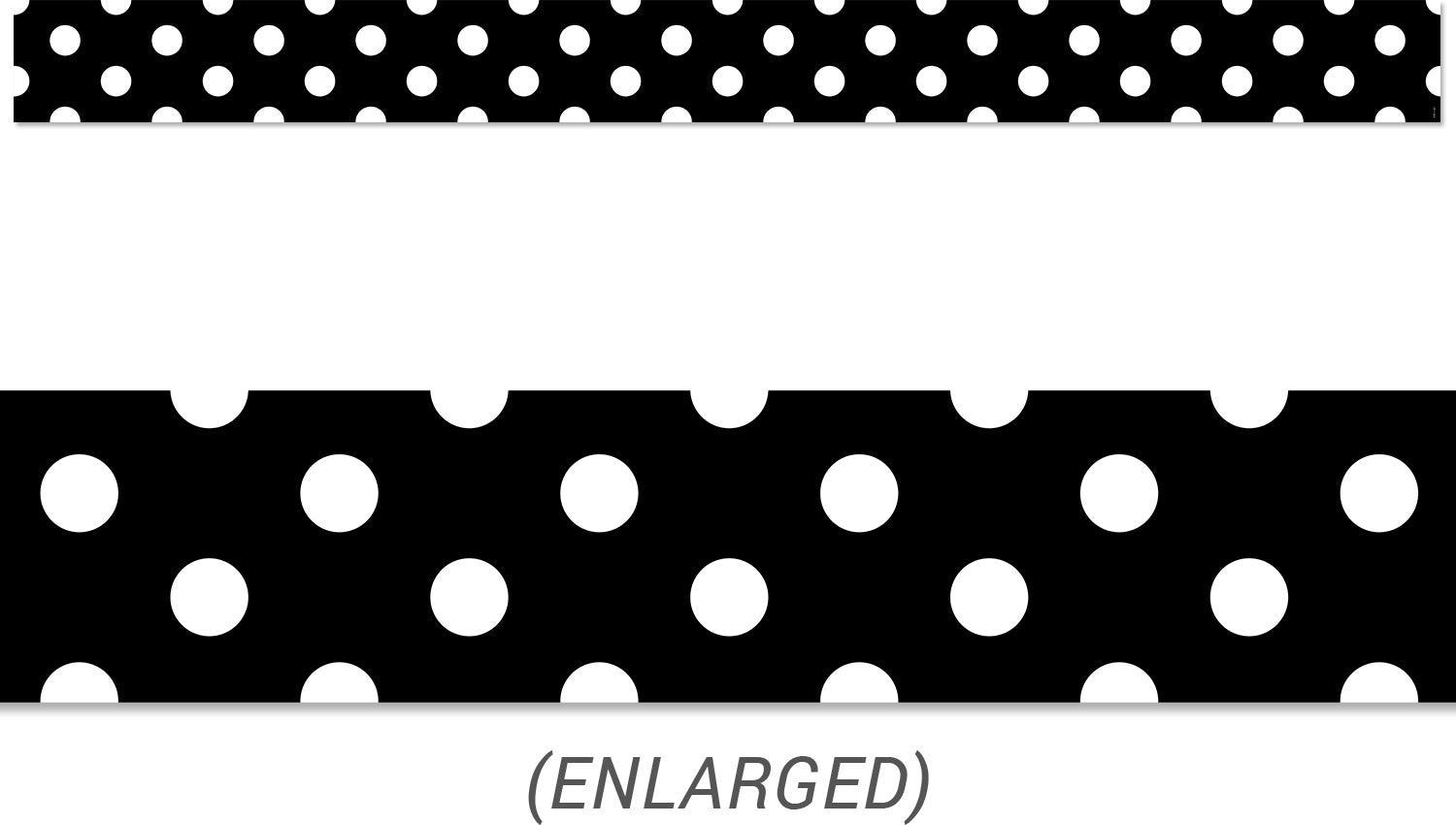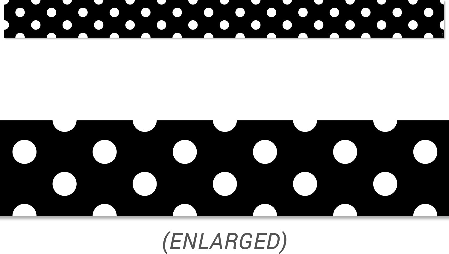 Classic dots in classic colors, this Core Decor Polka Dots on Black Border is perfect for any bulletin board. The neutral colors and simple style make it perfect to trim bulletin boards in a wide variety of classroom, office, church, and school settings. This bulletin board border can be used alone to create a basic look or layered with another border for a more designer look.