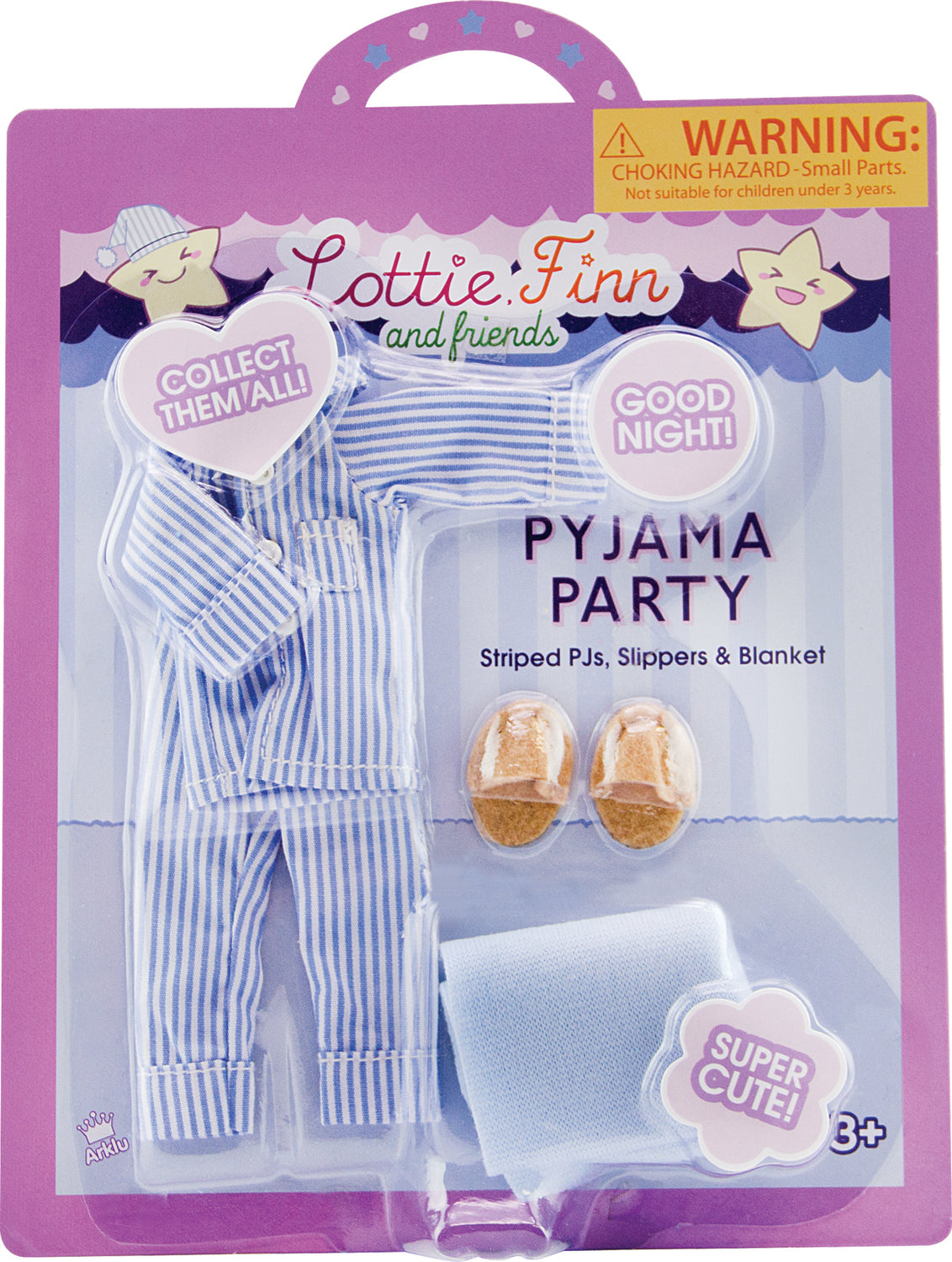 Regular price $17.99• IT'S SLUMBER PARTY time for Lottie who is having all her friends come to stay• DOLL CLOTHES SET includes striped Doll PJs, incredibly comfortable doll slippers and doll blanket• NURTURING INDIVIDUALITY AND CREATIVITY through play, Lottie's a wholesome, age appropriate doll• CUTE DOLL PAJAMAS for 7 inch doll• SO MUCH MORE than princess fashionistas. Lottie Dolls are based on real-life nine-year-old kids.