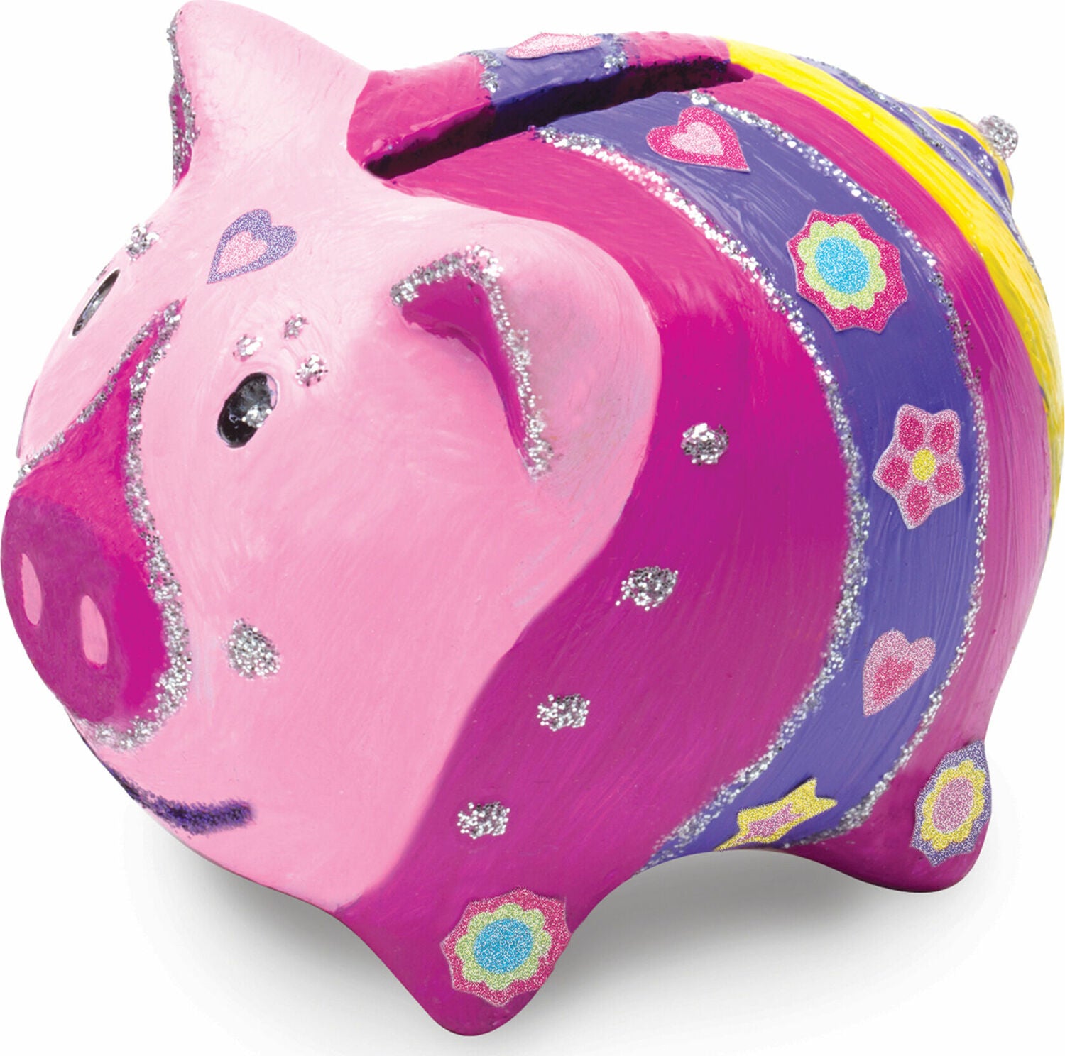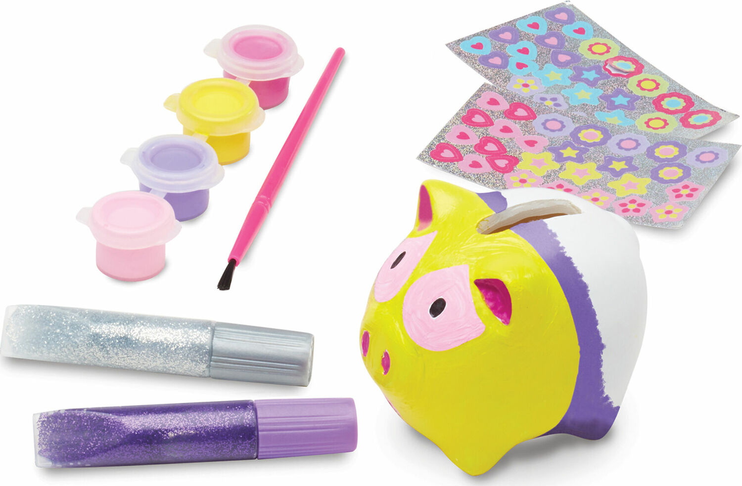 Melissa & Doug Created by Me! Piggy Bank Craft Kit with 4 Pots of Paint, Brush, Glitter, Stickers