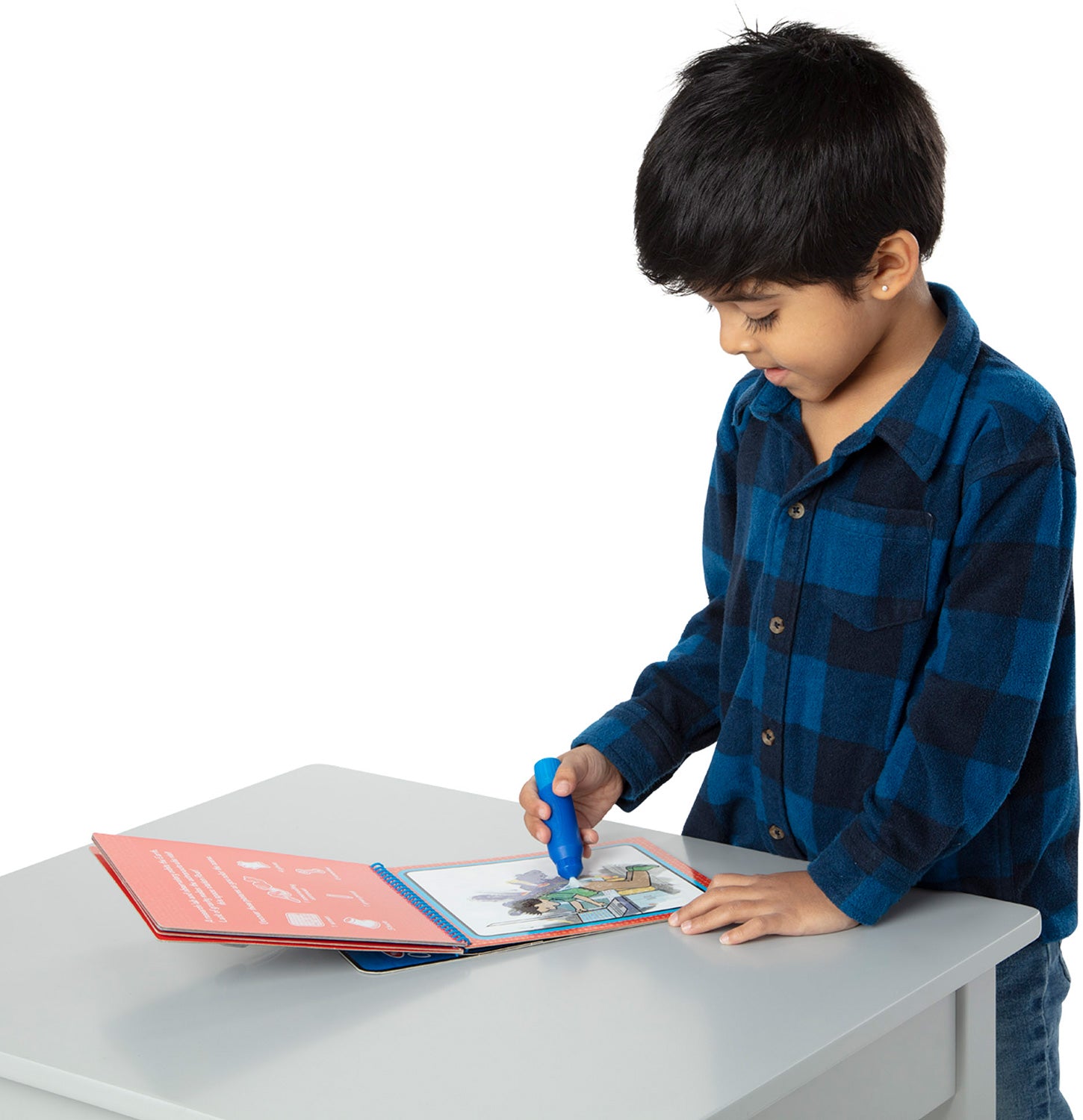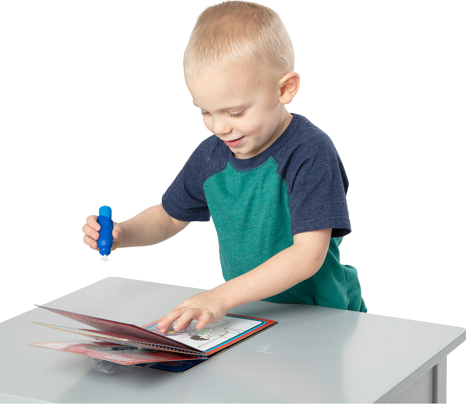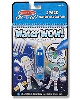 Regular price $10.99No-mess painting for kids! This exciting paint-with-water coloring book includes four reusable pages and a refillable water pen. Simply use the pen to color in each scene—details and vibrant color appear with every stroke! Then let the page dry to erase the pictures and color it in again and again. This space-themed book includes four exciting scenes to color (satellites, rocket ship, lunar landing, and space station), and a search-and-find activity for each scene. The chunky-sized water pen is easy for kids to hold and stores neatly right in the front cover, making this Water WOW! an ideal travel activity book and travel toy for kids! For more than 30 years, Melissa & Doug has created beautifully designed imagination- and creativity-sparking products that NBC News called “the gold standard in early childhood play. †We design every toy to the highest-quality standards, and to nurture minds and hearts. If your child is not inspired, give us a call and we'll make it right. Our phone number is on every product!