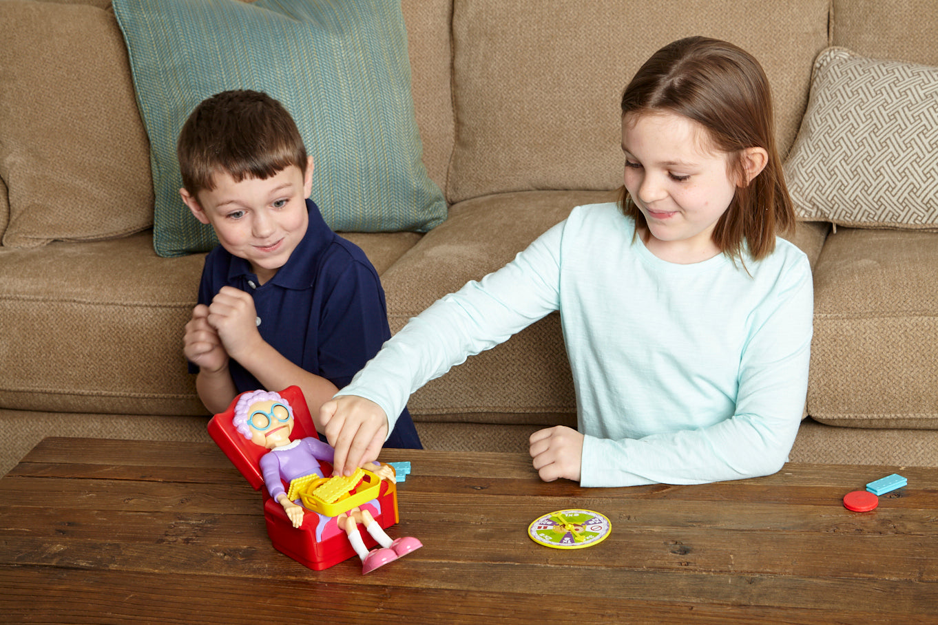 Take the treats without making a peep with Greedy Granny! Granny loves her sweets, but she's not so great at sharing. As she snoozes, spin the treat wheel to see which sweet to swipe. Be quiet … one wrong move will wake Granny up and send her teeth flying! Be the first player to collect one of each of her treats to win the game! For 2 to 4 players, ages 4 and up.