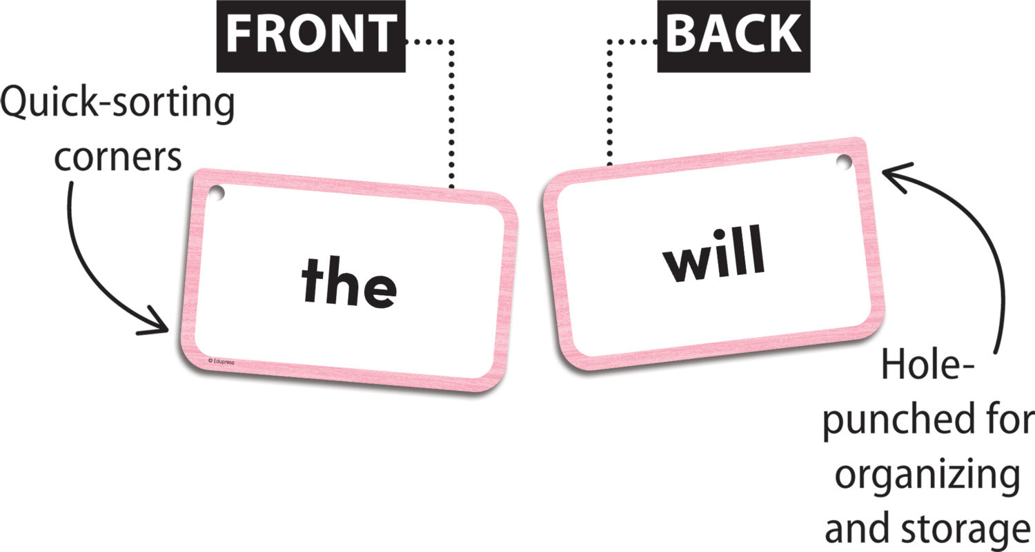 Each flash card set contains a collection of full-color, high-interest student cards as well as instructions and tips for the teacher or parent, suggested activities, and additional blank cards. Each card has a hole in the top corner that can be fit with a ring or string to help with organization and storage. Additionally, each card has one corner that is shaped differently than the others. By...