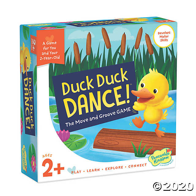 Get moving and grooving with this fun dancing game for toddlers! Duck Duck Dance! is simple and sweet, with 4 large dice featuring 8 different easy dance moves. From spinning to wiggling, players imitate the adorable ducks to uncover the 4 audience members to complete the game! All 2+ games include a parent guide with tips for adapting the game to your child’s age and skill level, as well as fun twists to play the game in new ways!