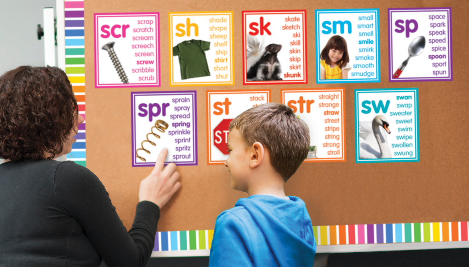 Regular price $17.99Use these colorful and visually-appealing photo cards to teach the spelling-sound correspondence of common consonant blends and digraphs. The cards make it easy to teach these distinct phonics foundations and word analysis skills. Use during guided practice in small groups or as a class, and display as a reference for early readers to use on a daily basis. Each piece measures 7-3/4" x 9". 30 total pieces.