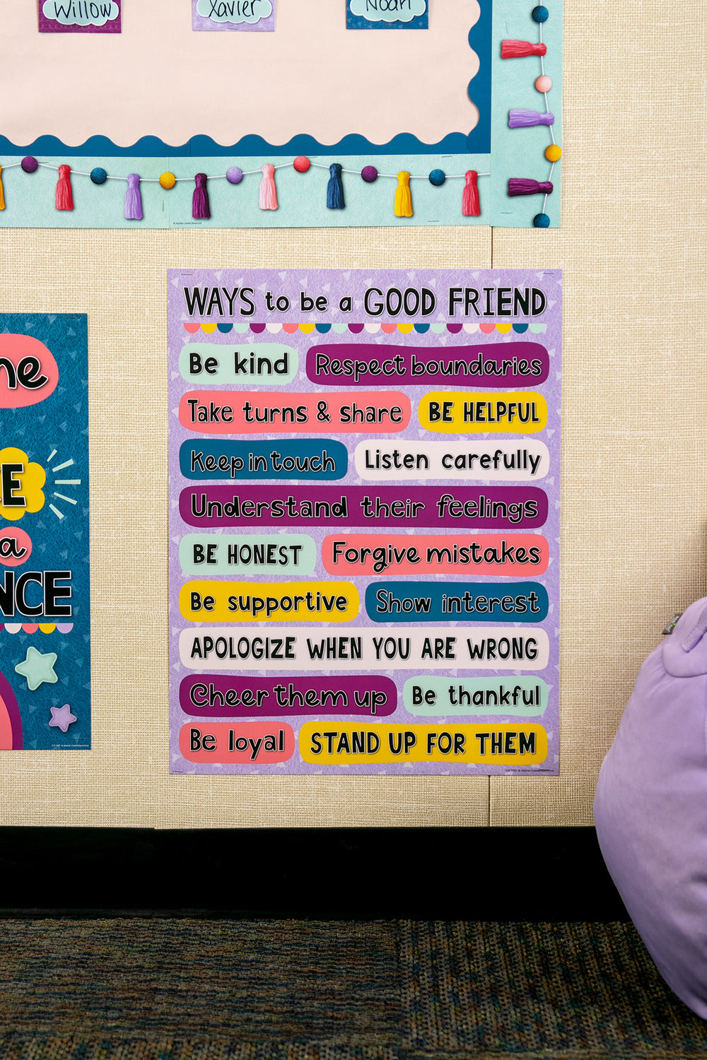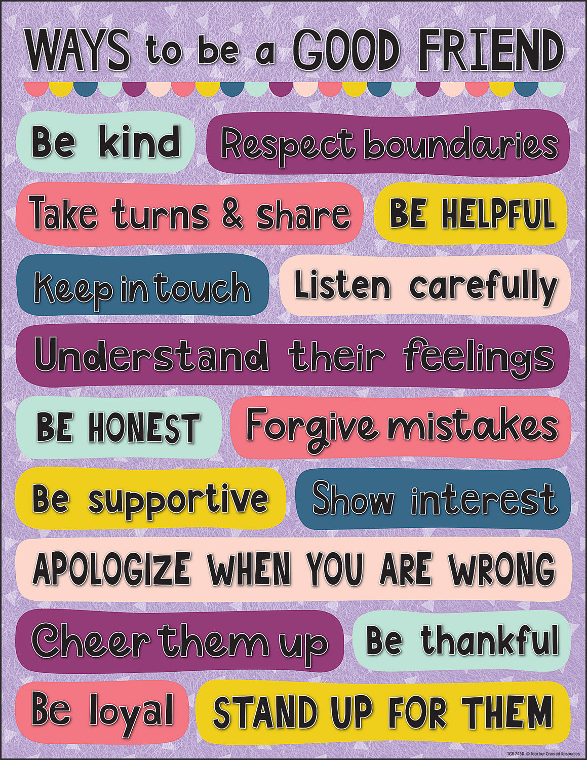 Regular price $4.99Oh Happy Day Ways To Be A Good Friend Chart, by Teacher Created ResourcesConvenient, useful learning tools that decorate as they educate! Each chart measures 17" by 22"...