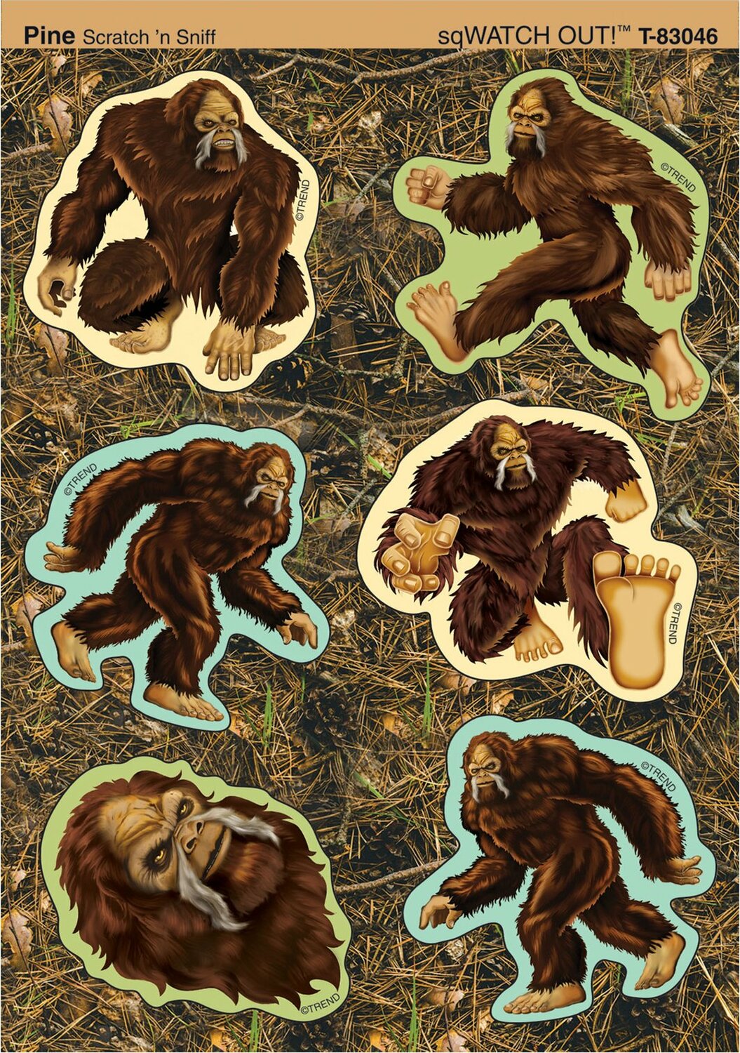 Welcome to the woods! Everyone loves to collect and trade scented stickers and these Bigfoot designs are BIG fun. A variety of Bigfoot poses along with the pine scent delights kids and adults. Stick your favorites on letters, party invitations, and cards, and add Bigfoot to hand-drawn scenes to create stories and unique crafts. The designs coordinate with sqWATCH Out!â„¢ Three Cornerâ„¢ Card Game. Sticker sheets are great party favors, game prizes, and game night giveaways. 6 designs, 24 stickers per pack.