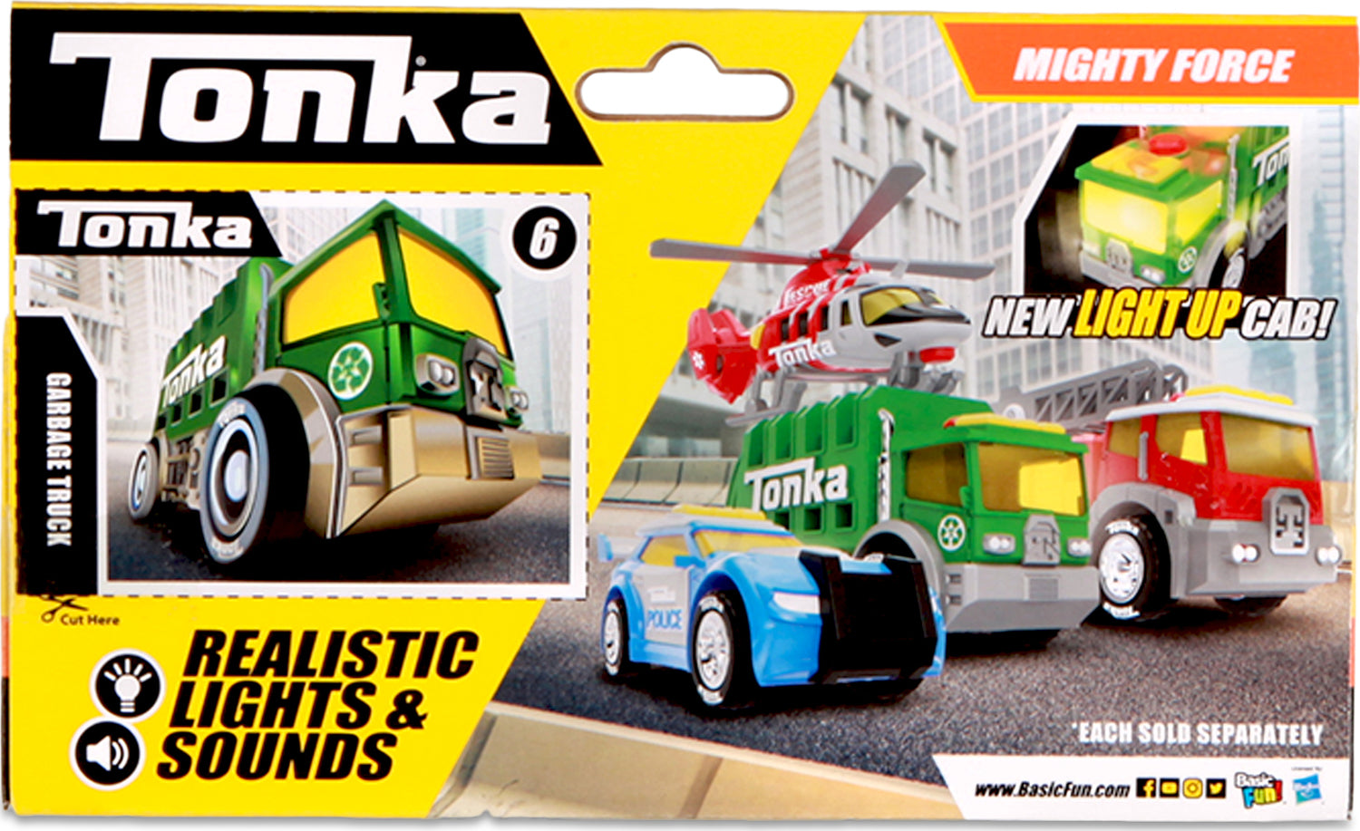 These Tonka vehicles are tough enough to get the job done! Each vehicle comes equipped with rugged design, realistic sound effects, new "Light-Up" cab feature, and a bonus Tonka collector card on back of package!