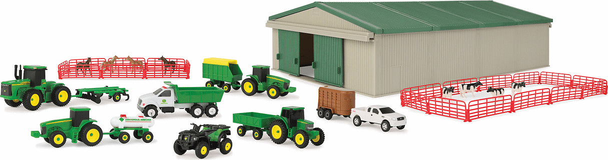 John Deere Die-Cast Farm Toy 70 Piece Value Playset - Includes Machine Shed, Toy Vehicles and Toy Animals