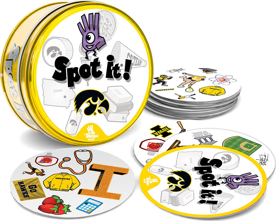 Regular price $17.99Spot It! The Iowa Hawkeyes NCAA Edition puts a college spin on the family favorite. Just like the other Spot It! games, this Iowa Hawkeyes Edition comes with a variety of unique symbols for you to identify and match from card to card. Many of the symbols represent your favorite NCAA team and other college memorabilia. Play it once or play all night, with 55 unique cards and five different mini-games.
