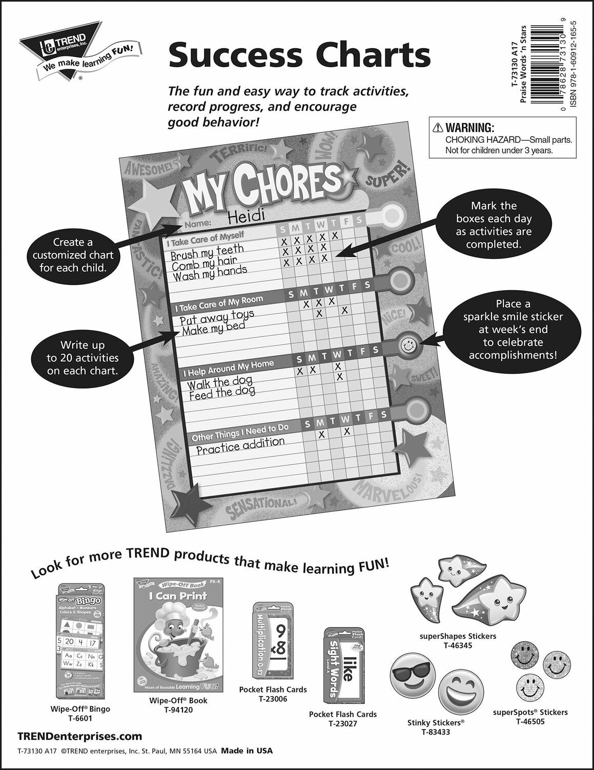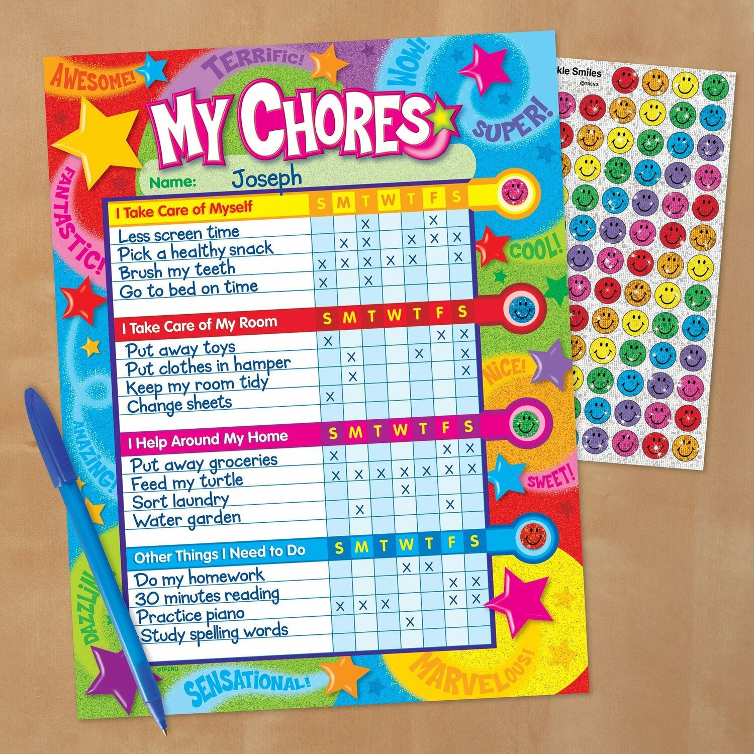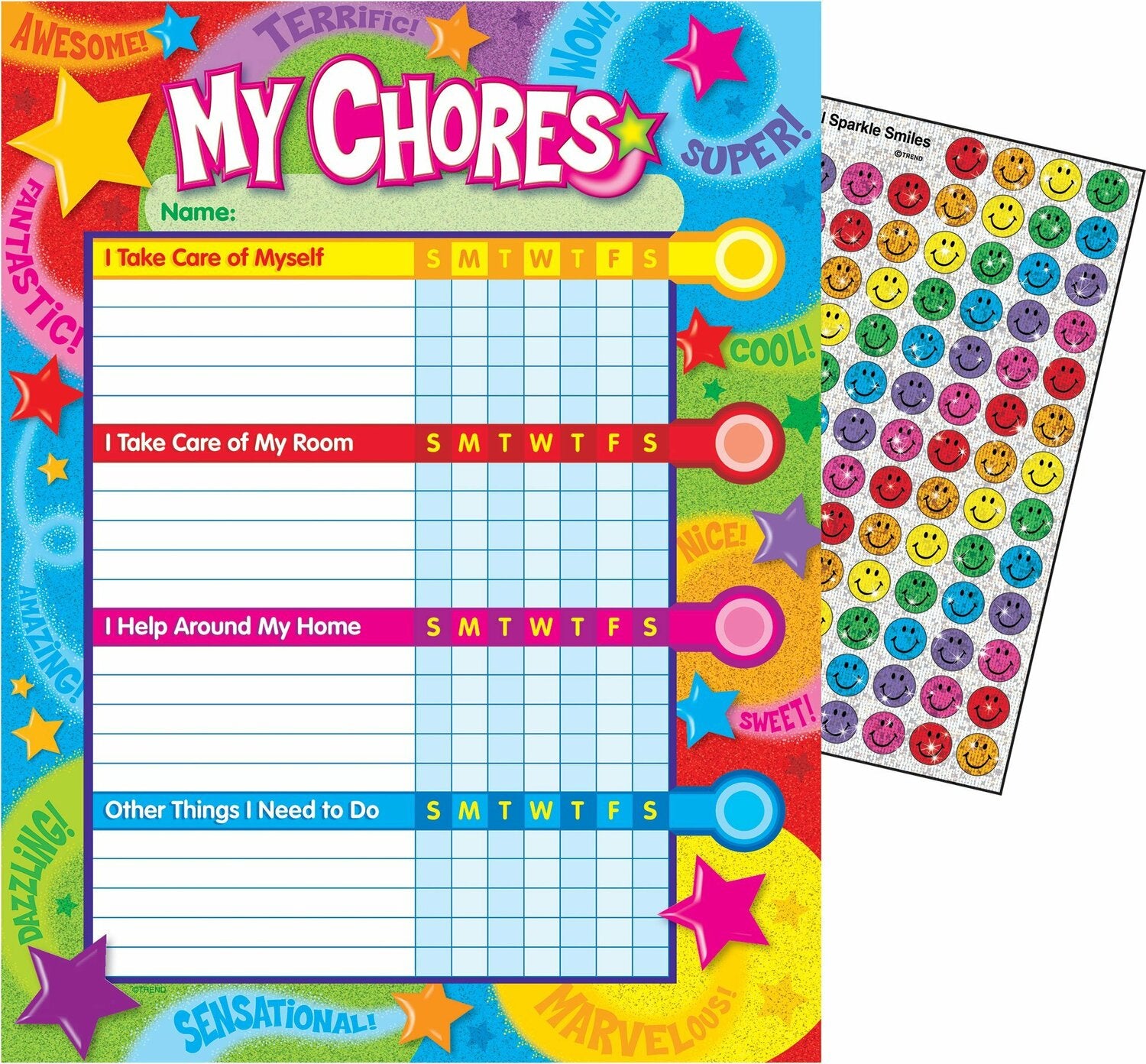 Regular price $11.99Setting clear behavioral expectations and providing clear feedback on progress is a healthy way to help kids build social and self-care skills. These charts are a colorful, handy tool to help, by providing a weekly schedule of tasks to be accomplished. Stick to the refrigerator, pin to a board, or tape to any vertical surface for easy review. Stickers are provided for sparkly motivational fun....