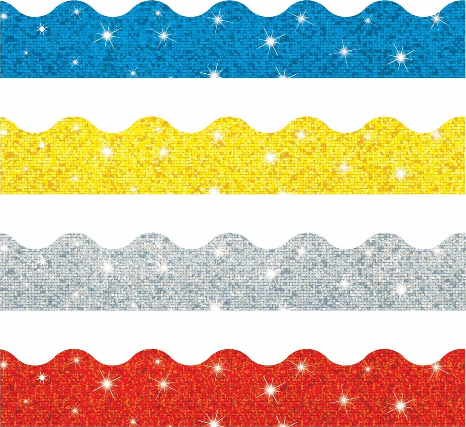 Regular price $34.99Irresistible designs at your fingertips! Spruce up your spaces and rev up the fun with a convenient Variety Pack of Terrific Trimmers ®. Vibrant, contemporary designs create cheerful, inspiring classrooms, add pizzazz to parties and events, inspire clever hats ’n crowns, and dress up storage containers, cubbies, and shelves. Layer patterns on solids, sparkles, or metallics for extra WOW! Durable and reusable. Includes Blue Sparkle, Silver Sparkle, Yellow Sparkle, and Red Sparkle Terrific Trimmers ®. 130' total.
