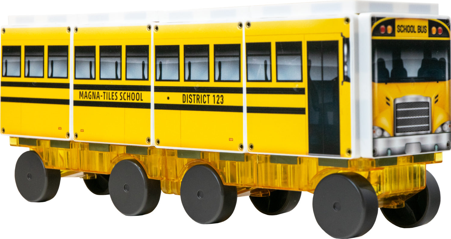 Your little one can have fun with his or her very own Magna-Tiles® Structures bus! The front of the tiles have all the bus pieces while the second side has numbers and symbols so your child can learn numbers and basic math skills.