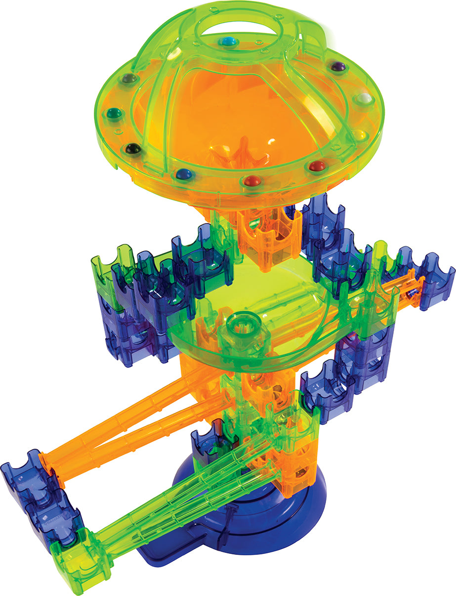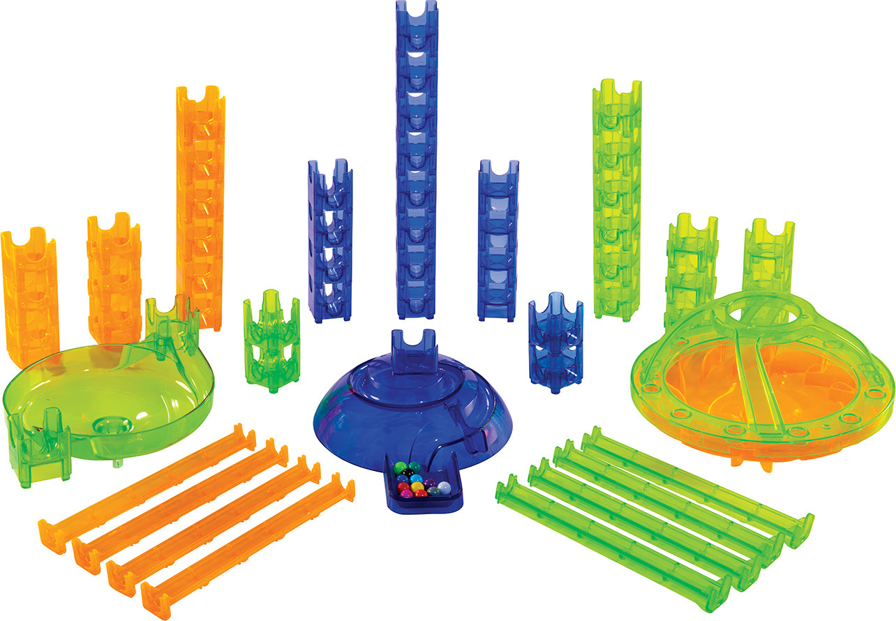 Regular price $83.99It’s a dash to the finish line with this twist on the classic Q-Ba-Maze STEAM activity! Build your maze, choose a colored marble and swivel the launcher to send all the marbles racing toward first place. Featuring neon colors and exciting new pieces, this marble race activity is great for group play and competition, or play alone and see if you can guess which marble will win. Follow the step-by-step directions to build the suggested design or get imaginative with your own unique creation!