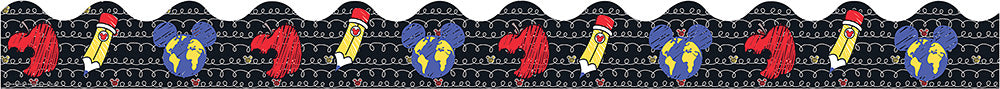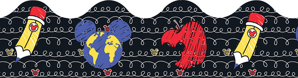- Eureka Mickey Mouse School Supplies extra wide cut deco trim serves as colorful board trim décor that will transform every mundane board into a colorful and creative marvel.