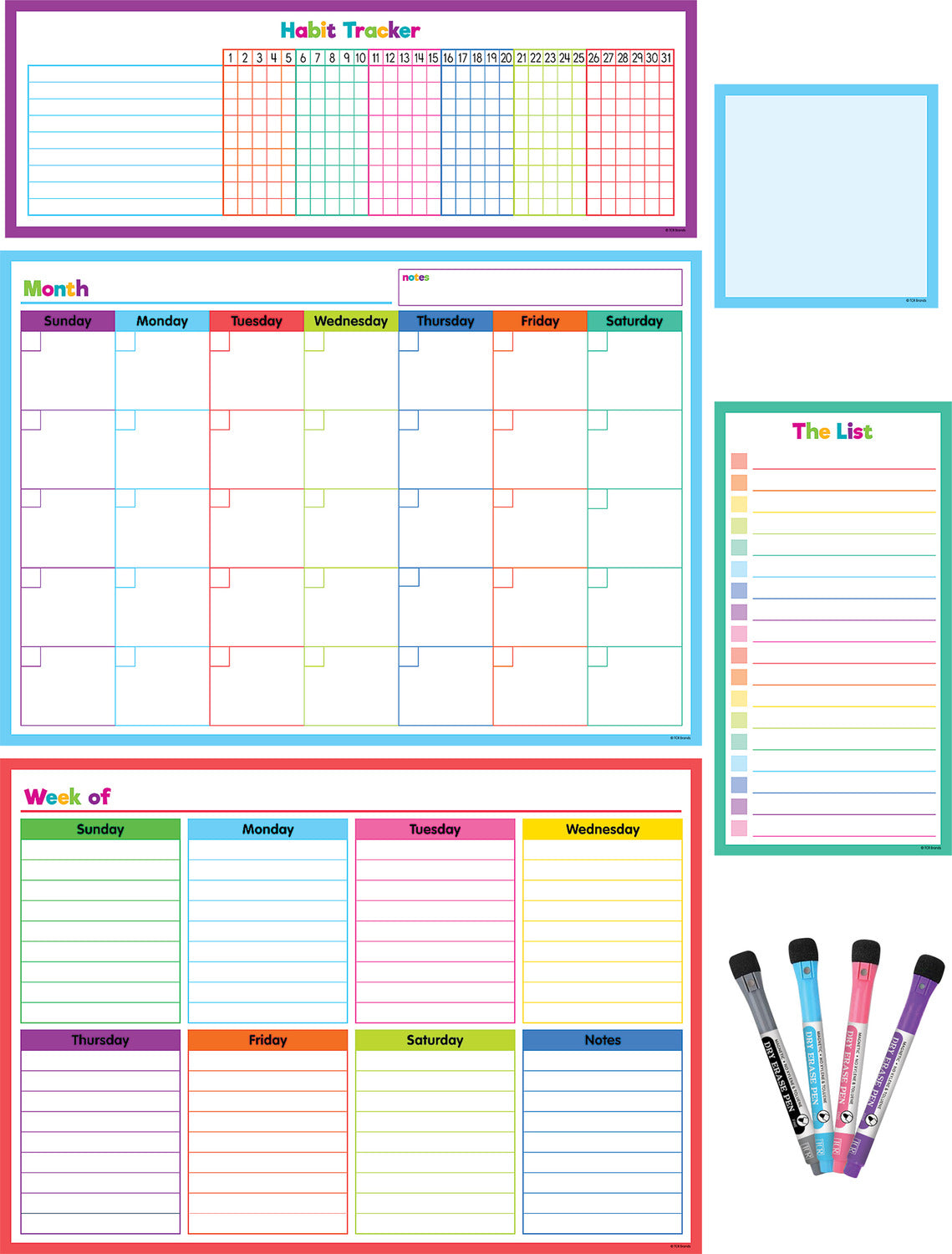 COLORFUL DRY-ERASE MAGNETIC CALENDAR SET
